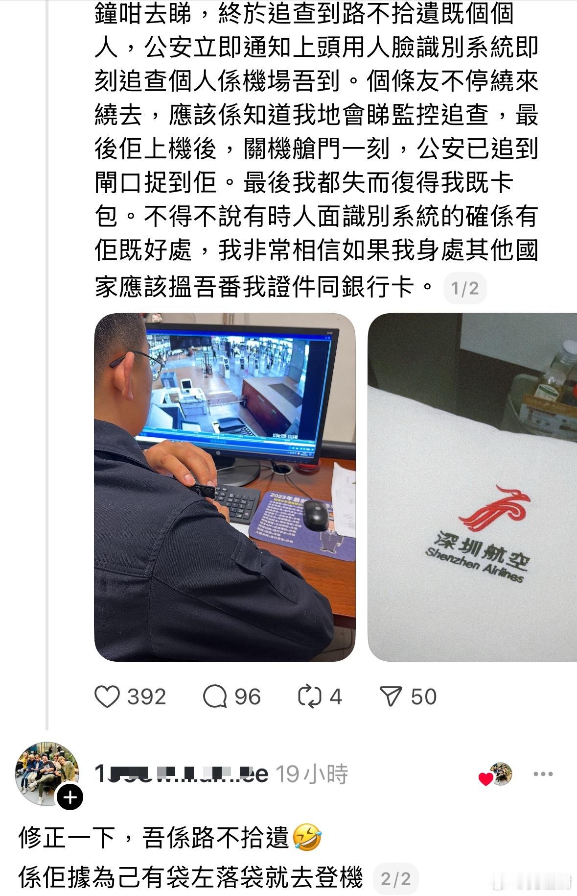 一名港人在青岛机场遗失卡包,回头再找已经找不到,于是报警。机场公安受理后,邀事主一同调看CCTV,并锁定拾取卡包并涉嫌据为己有者,最后帮他追回卡包。事主最后感叹,装有人面识别系统有一定的好处,如果发生在国外,肯定找不回来。热点观点港闻瞧我没见过世面的样子