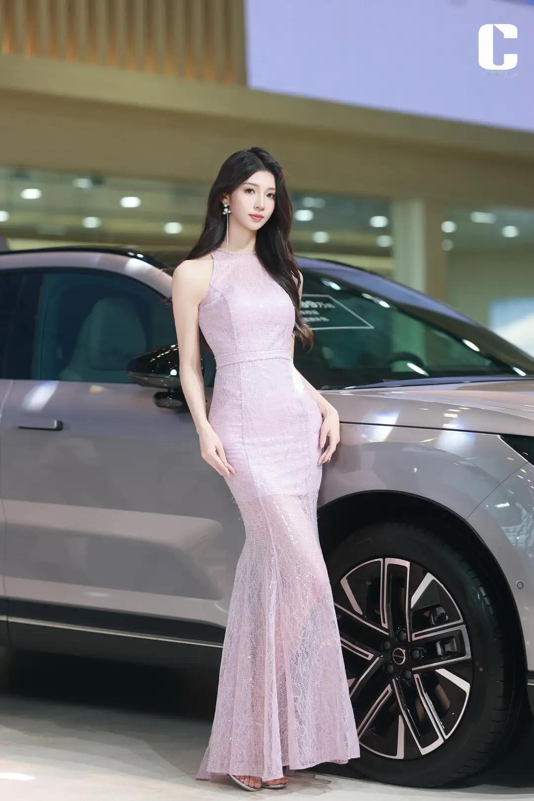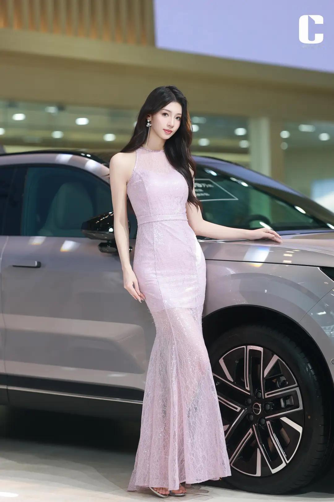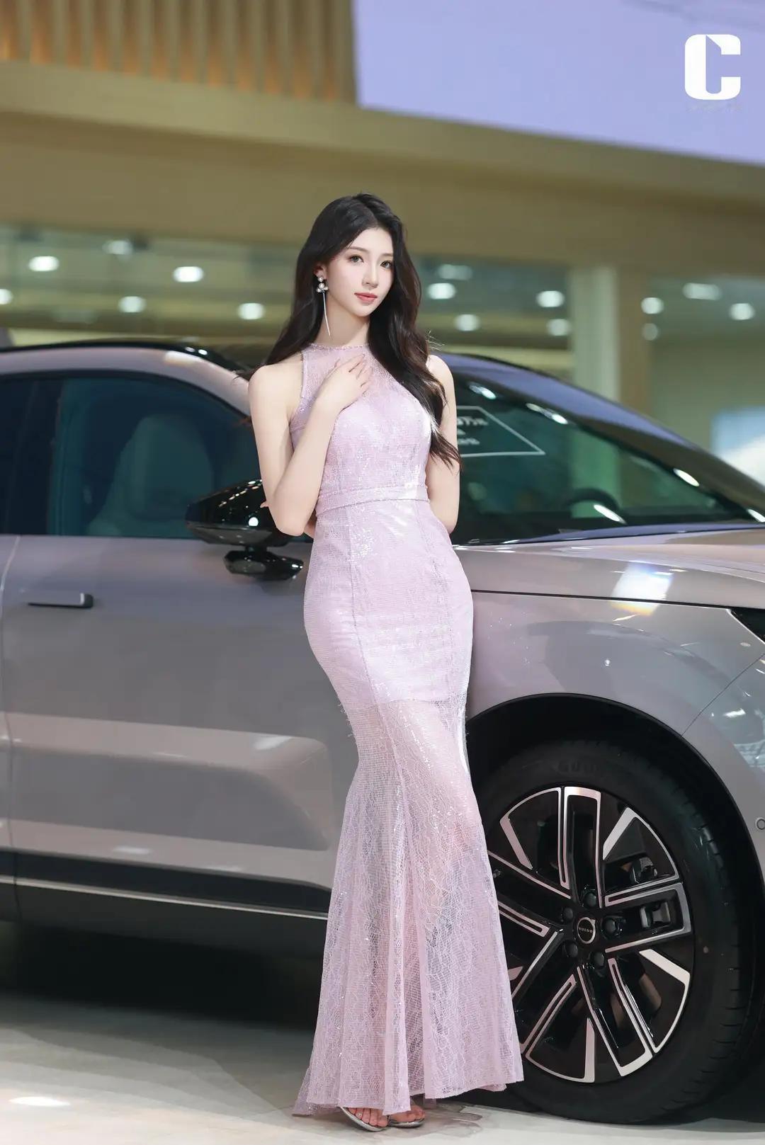 《车展上的粉色焦点》 在车展的璀璨灯光下,一位身着粉色连衣裙的女模特成为了全场瞩目的焦点。她站在一辆浅灰色的现代汽车旁,仿佛是从时尚杂志中走出的封面女郎,优雅与自信在她身上完美融合。 这位女模特的粉色连衣裙无肩带设计,修身剪裁勾勒出她曼妙的身姿。裙子的材质带有闪亮的光泽,在灯光的照耀下,如同披上了一层星光,更添几分高贵与神秘。她的头发披肩,长度及腰,乌黑亮丽,与粉色的裙子形成了鲜明的对比,更显肌肤的白皙细腻。她的高跟鞋细跟轻点地面,每一步都散发着自信与优雅,仿佛在向观众展示着她的魅力与风采。 她站在汽车的前轮旁,汽车为浅灰色,轮毂设计现代,具有金属质感,与她的粉色连衣裙形成了和谐的搭配。背景是一个室内展示厅,地面光滑,环境明亮,整体氛围时尚且高端。她的存在,让这辆汽车焕发出了新的生机与活力,仿佛在诉说着一个关于速度与美的故事。 她的身材曲线优美,如同雕塑家精心雕琢的作品。每一个细节都散发着女性的柔美与力量,让人不由自主地被她吸引。她的微笑如同阳光穿透云层,照亮了整个展厅,让人感受到一种温暖与亲切。她的眼神坚定而自信,仿佛在向世界宣告着她的存在与价值。 在这个充满现代感的空间里,她不仅是一位模特,更是一位美的使者。她用自己的魅力与风采,让观众在欣赏汽车的同时,也能感受到美的力量。她的存在,让整个车展变得更加生动与有趣,让人在惊叹于汽车工业的进步时,也不禁为她的魅力所折服。 车展上的这位粉色连衣裙女模特,如同一道亮丽的风景线,将时尚与科技完美融合。她的身材与气质,让人在欣赏汽车的同时,也能感受到女性的魅力与力量。她不仅是车展的亮点,更是现代女性自信与优雅的象征,让人在惊叹于汽车工业的进步时,也不禁为她的魅力所折服。
