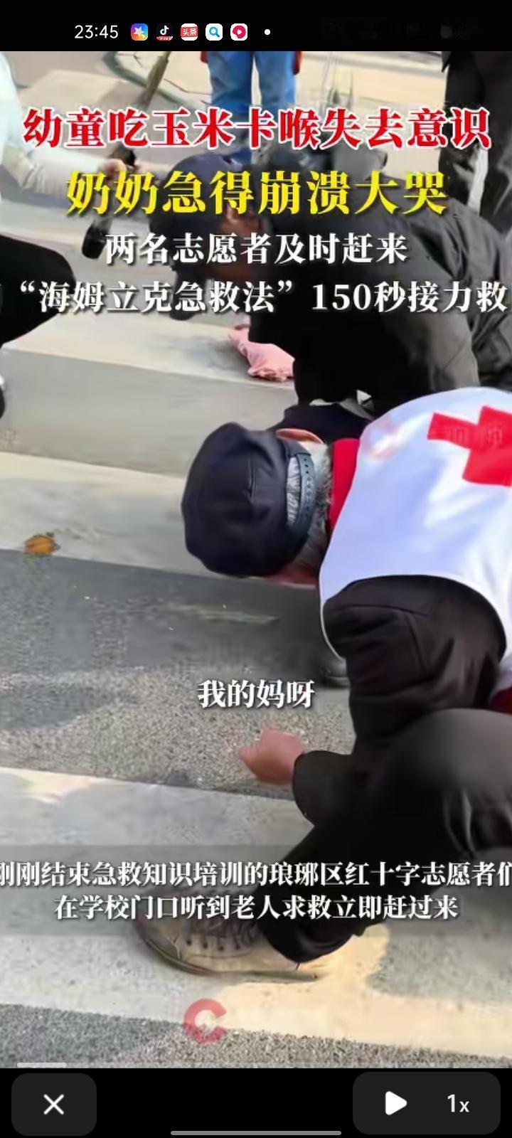 12月18日,安徽滁州。一幼童出一米引发气道异物梗阻,瞬间失去意识,刚刚结束急救知识的红十字志愿者们在学校门口听到老人求救立刻赶过来,两人使用海姆立克法,150秒接力救援。最终孩子异物吐出,成功脱离危险,无大碍。 此次救援的成功,离不开志愿者们的快速反应和熟练操作,也提醒着更多家长和社会公众,应当主动学习急救知识和技能。只有人人掌握急救本领,才能在意外发生时,为生命争取更多希望。
