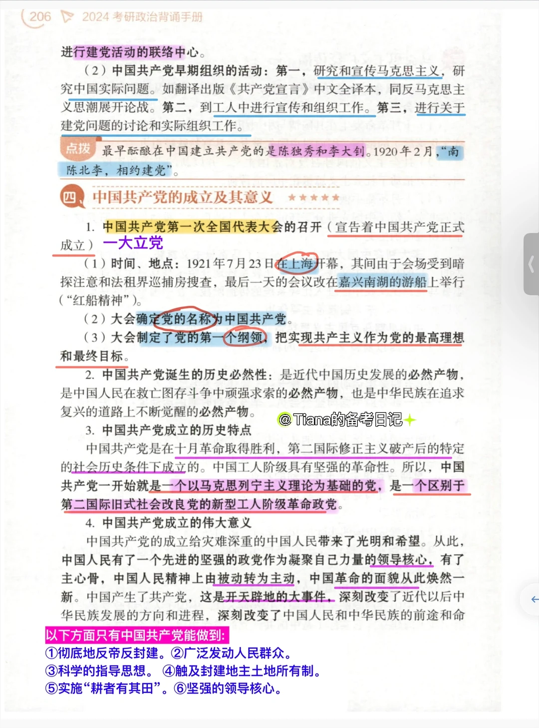 🌟整理【肖1000➕腿姐技巧班➕徐涛强化笔记】至肖秀荣冲刺背诵手册。 🌟史纲第四章|中国共产党成立和中国革命新局面 🌟P201-210