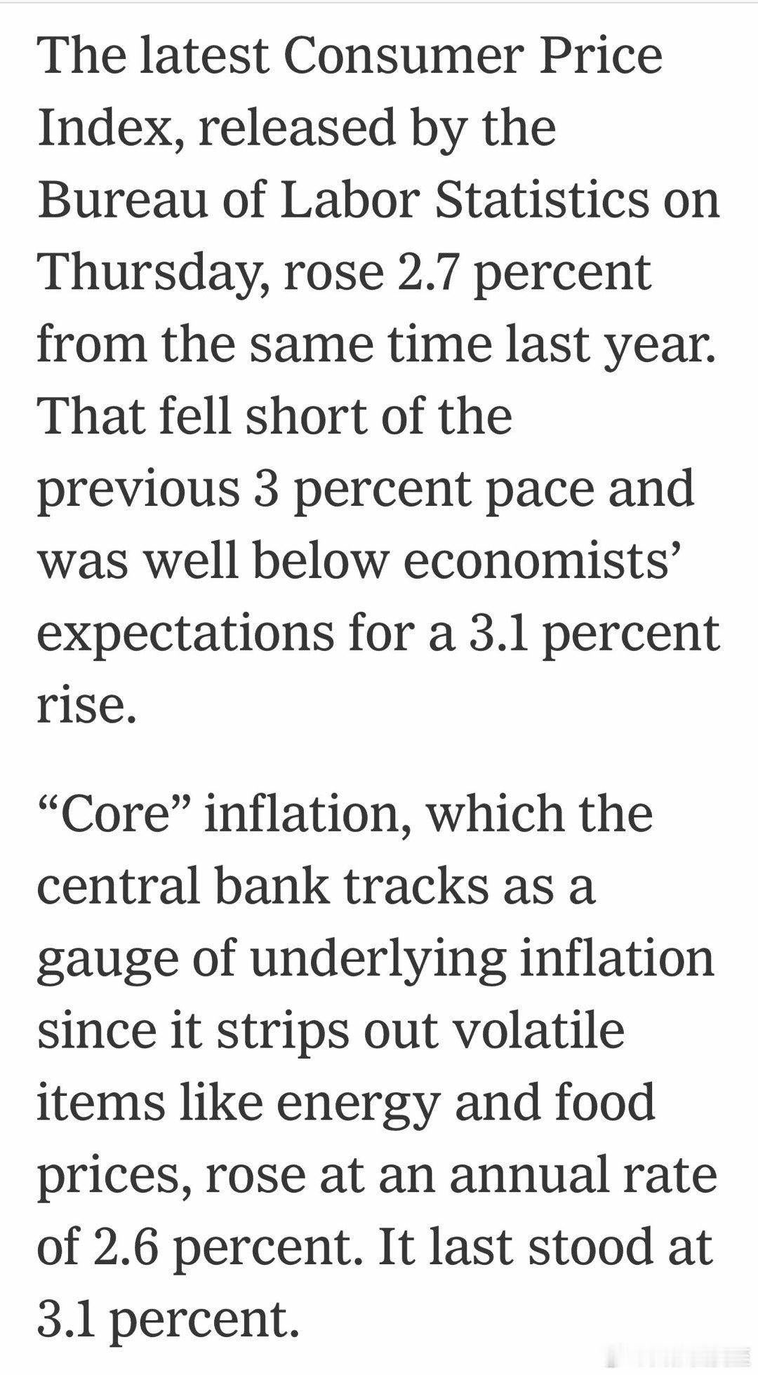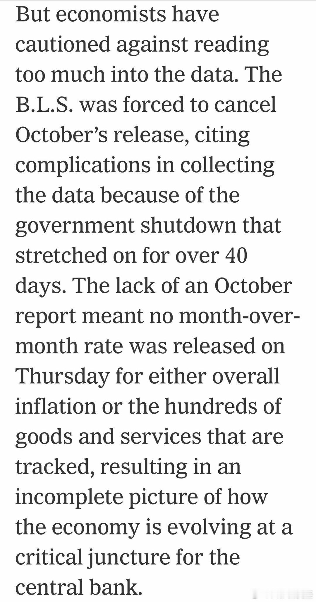 劳工部11月CPI通胀:2.7%,低于预期的3.1%、也低于九月的3%(十月没数据)不含食品和能源的核心CPI:2.6%,远低于九月的3.1%主要由于“住房”成本下降,经济学家普遍认为,数据收集有问题