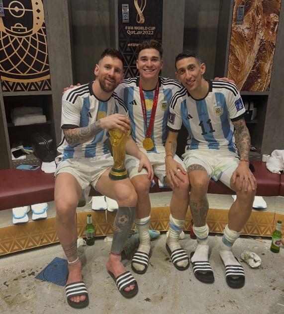 虎扑12月18日讯阿尔瓦雷斯更新社媒,晒出一张与梅西、迪马利亚以及世界杯冠军奖杯的合照,纪念阿根廷卡塔尔世界杯夺冠三周年。