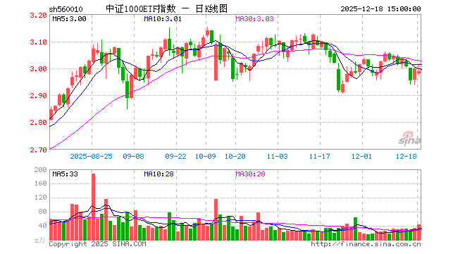 12月18日,中证1000ETF指数(560010)跌0.33%,成交额1.30亿元。当日份额减少600.00万份,最新份额为112.24亿份,近20个交易日份额增加4800.00万份。最新资产净值计算值为335.61亿元。