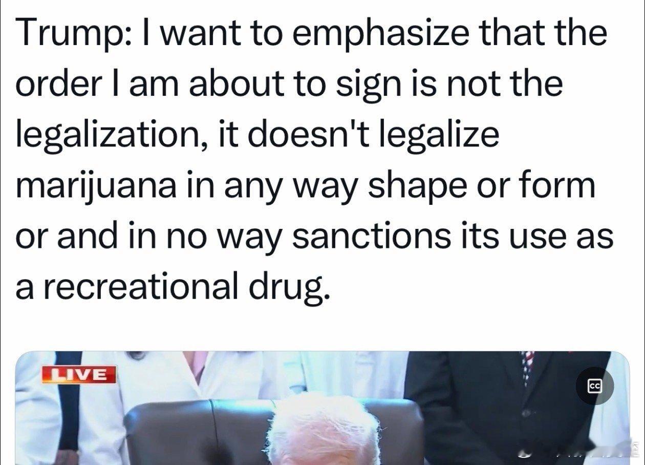 总统签行政令,降低大麻的毒品等级不是合法化,是允许“受管制的医用”