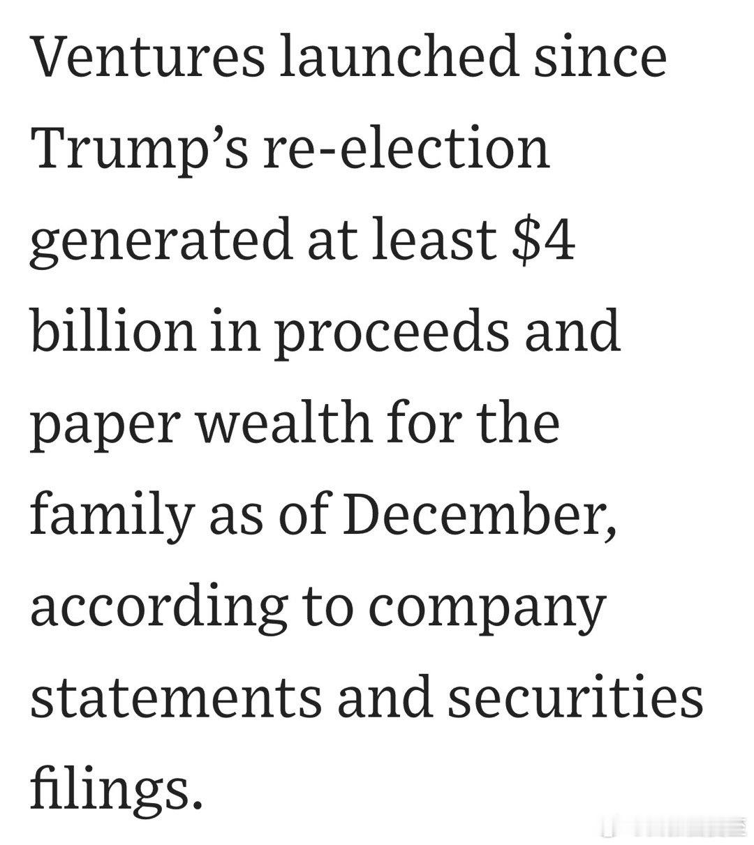 川氏家族,在T第二任期的第一年,公开、已知商业收益,至少四十亿美元💰