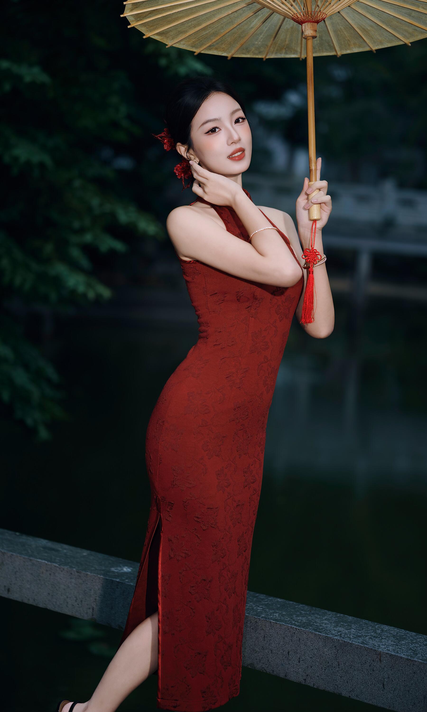 姐姐穿花色旗袍,美得令人心动!旗袍贴身剪裁,勾勒出曼妙曲线。立领盘扣藏典雅,花卉