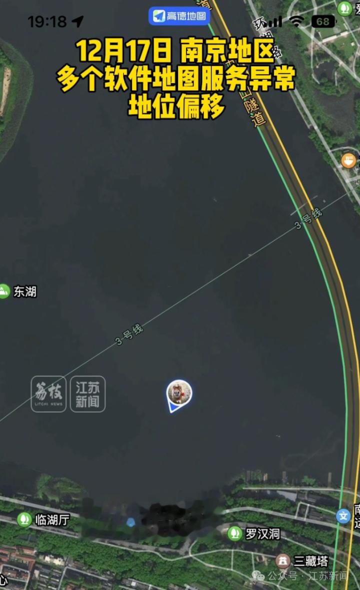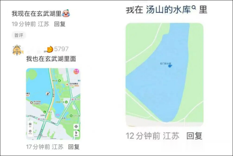 不少网友反映自己的定位出现在玄武湖里。