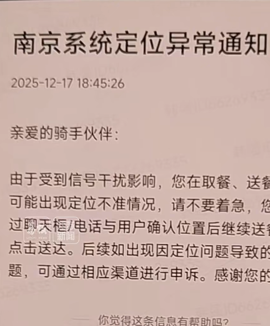 12月17日傍晚,有南京网友反映,多个常用导航软件系统突发异常。导航界面持续显示“行驶在无数据道路上”。