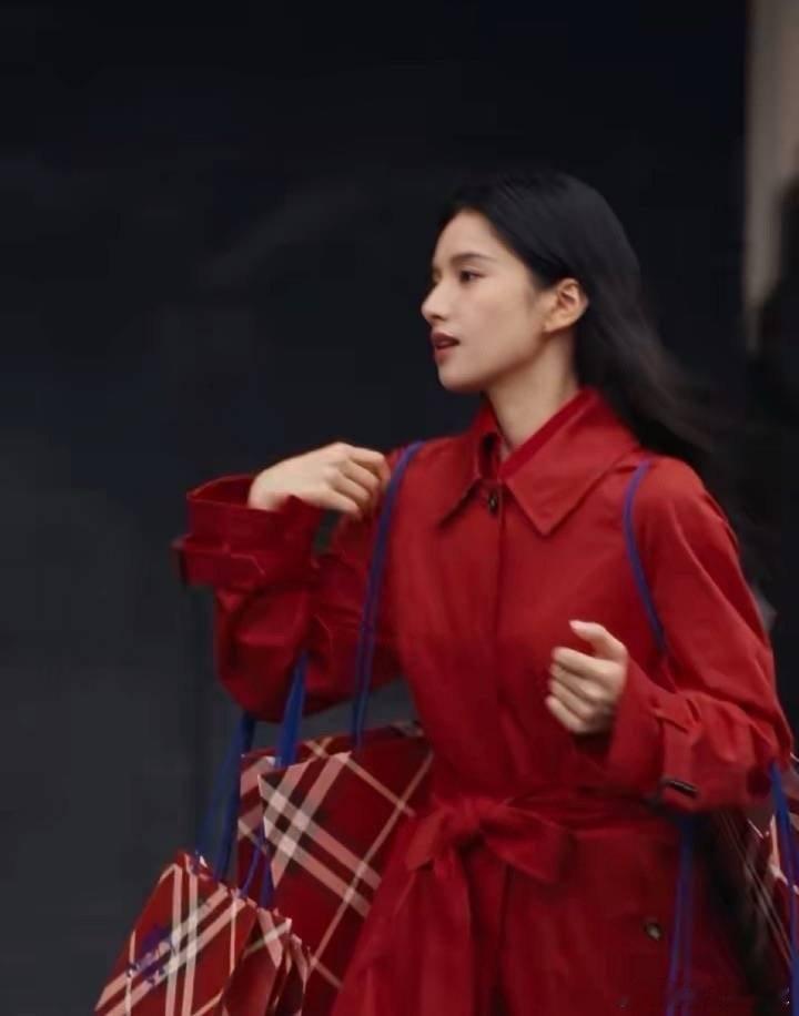 张婧仪出镜BURBERRY今年的新禧贺岁系列广告 ,红色明艳动人