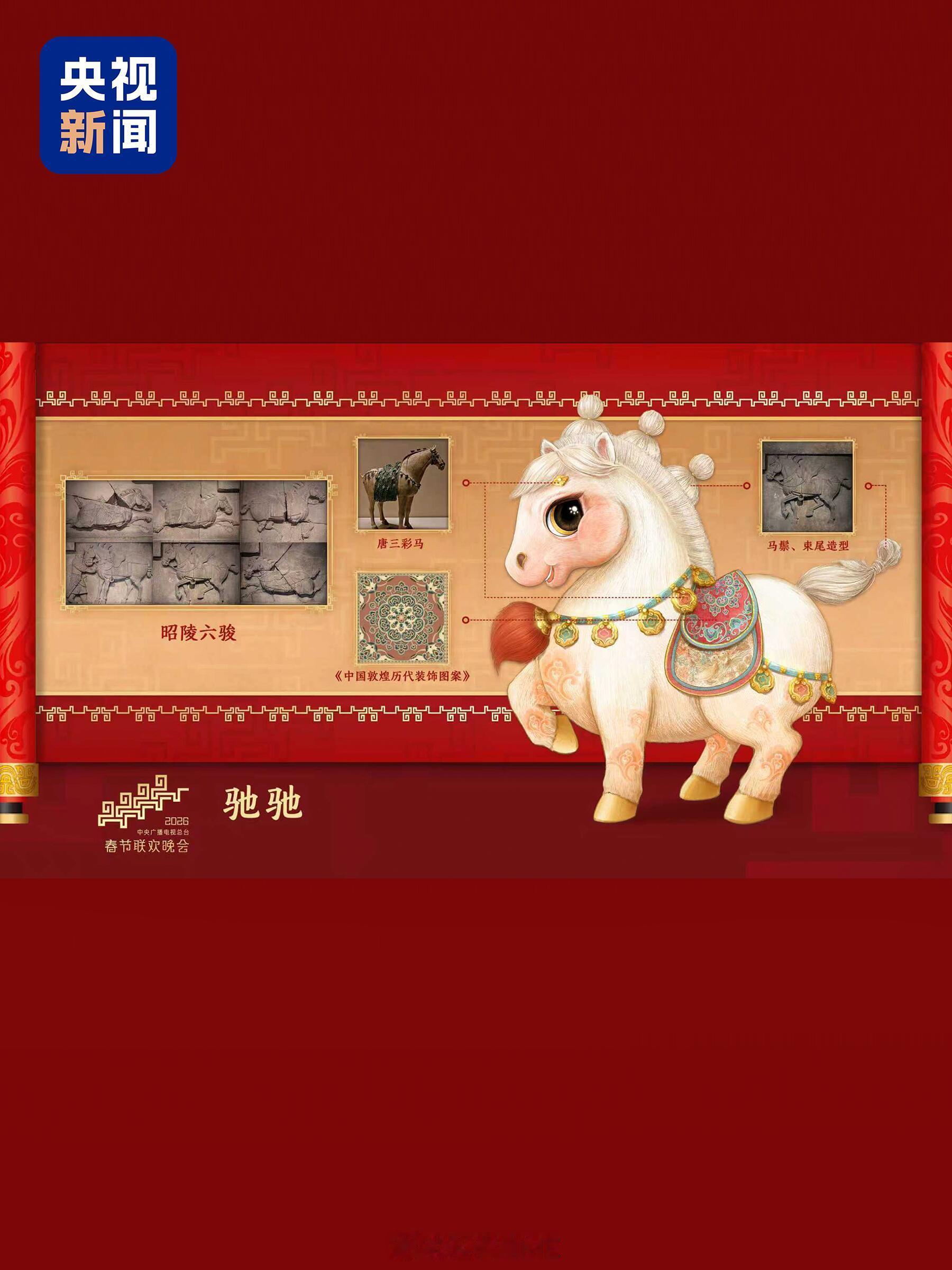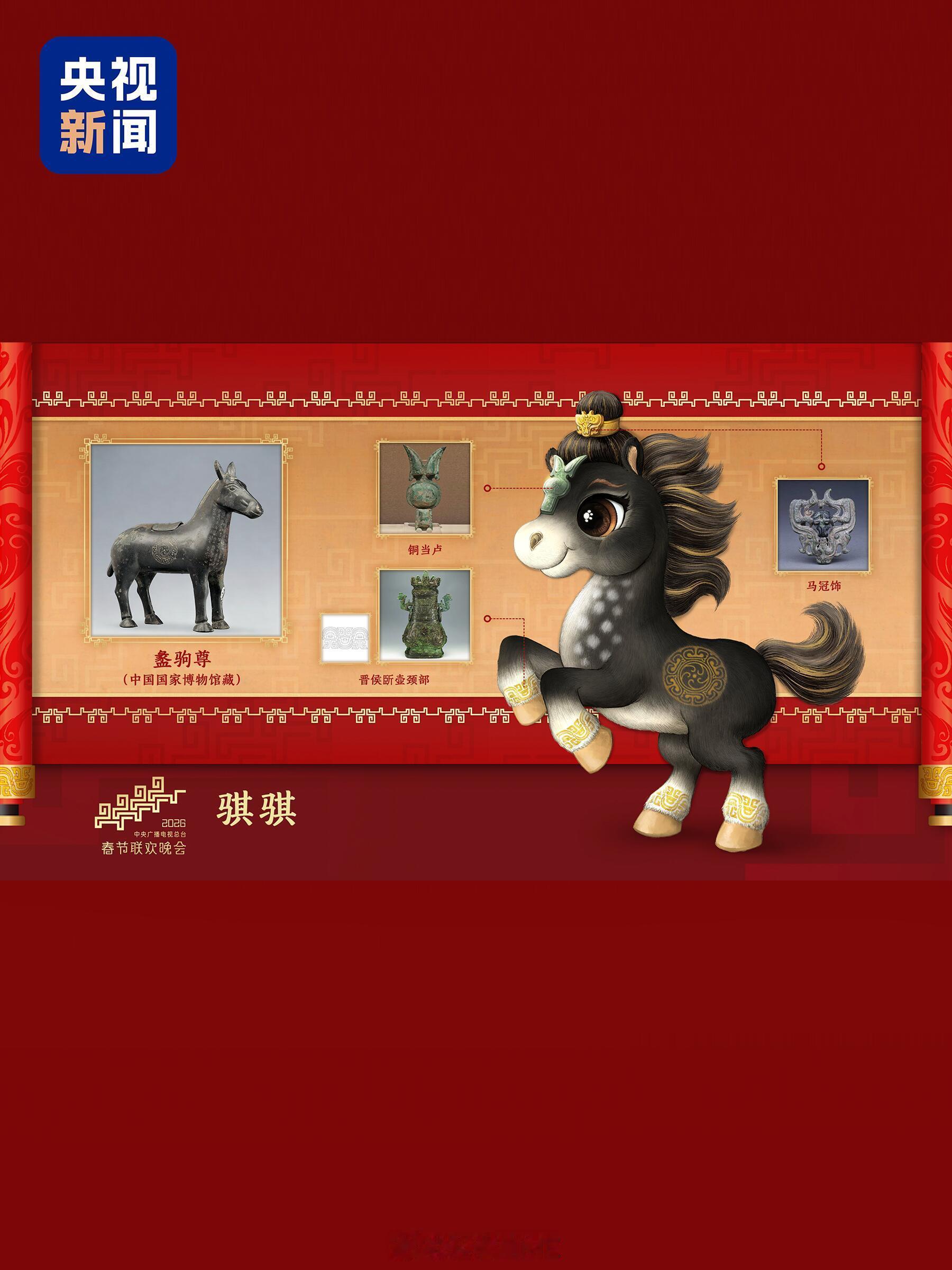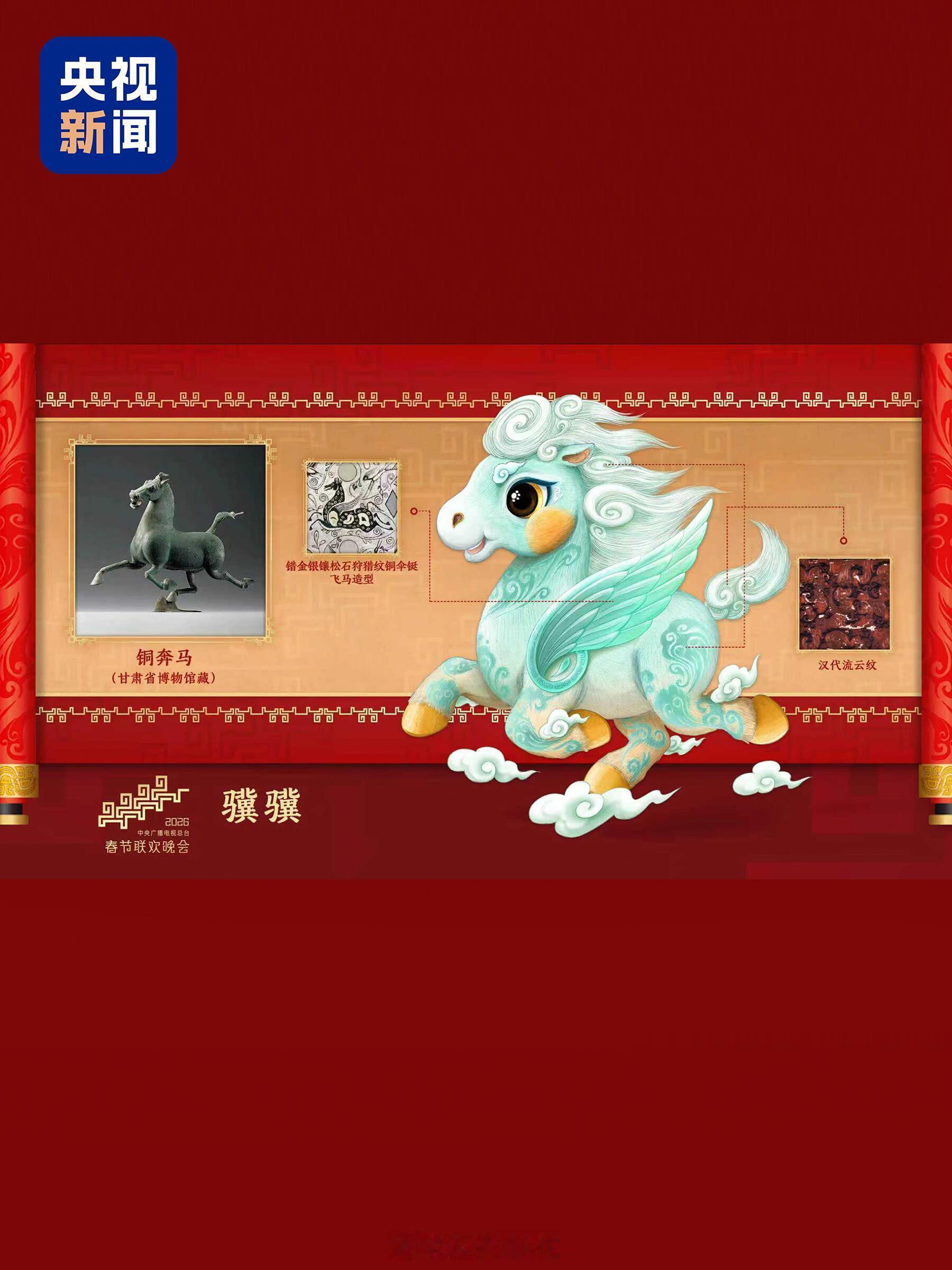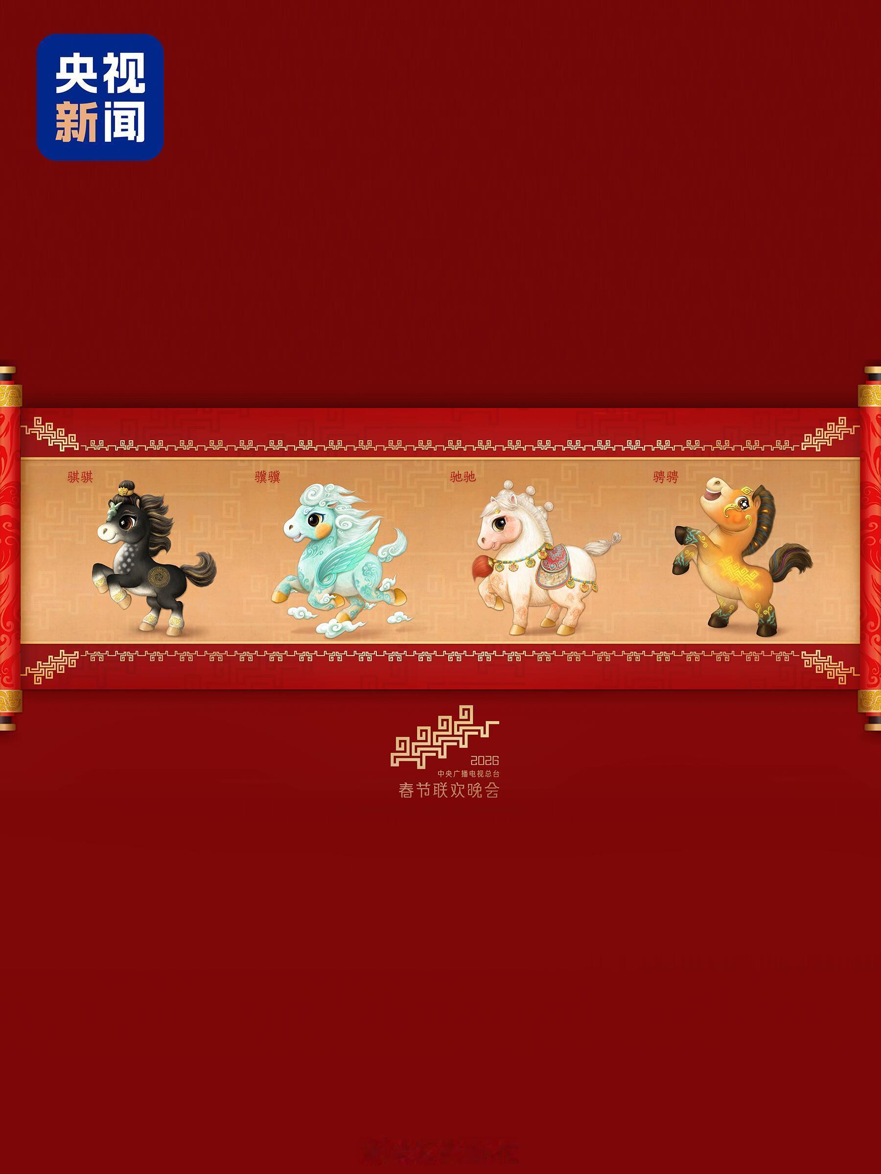 马年春晚吉祥物细节满满春晚吉祥物官宣!四匹骏马把马年仪式感拉满||今天(12月18日),中央广播电视总台《2026年春节联欢晚会》发布吉祥物形象。“骐骐”“骥骥”“驰驰”“骋骋” 四小只,光听名字就自带奔腾气势,和总台马年春晚主题“骐骥驰骋 势不可挡” 完美呼应!🐎吉祥物的设计灵感来源于中国不同时期马的经典形象,并将流云纹、山云纹等千年纹样“穿”上身,充盈着生生不息的历史美感和万象更新的时代气象,饱含马到成功、前程似锦的美好寓意。🐎“骐骐”设计灵感源自西周盠驹尊,配色取自“骐”字本意——青黑色的马,气质庄重而典雅。“骐骐”头戴当卢,高束发髻、彬彬有礼,尽显朝气蓬勃、心怀远志的昂扬奋进之姿。🐎“骥骥”设计灵感源自汉代天马,它的身姿参考国宝级文物铜奔马,翅膀借鉴错金银镶松石狩猎纹铜伞铤上的飞马造型。“骥骥”双翼舒展、腾云逐日的英姿,彰显奋发向上的精气神。🐎“驰驰”设计灵感源自唐代三花马。三花马因马鬃被修剪成三瓣而得名,是以昭陵六骏等为代表的唐代文物和史料中所见良马的最高规格。“驰驰”意气风发,束起的马尾更添英武之气,尽展自信从容的风姿。🐎“骋骋”设计原型是普氏野马。作为地球上唯一现存的野生马种,普氏野马是拥有6000万年漫长进化史的“生物基因活化石”。如今,中国普氏野马种群数量居世界之首,是我国生物多样性保护、生态文明建设的重要成果。“骋骋”的外形粗壮结实、身形矫健,是人与自然和谐共生的生动见证。马年马上到,提前把好运和祝福码住,愿我们都能像小骏马一样,在新的一年势不可挡!