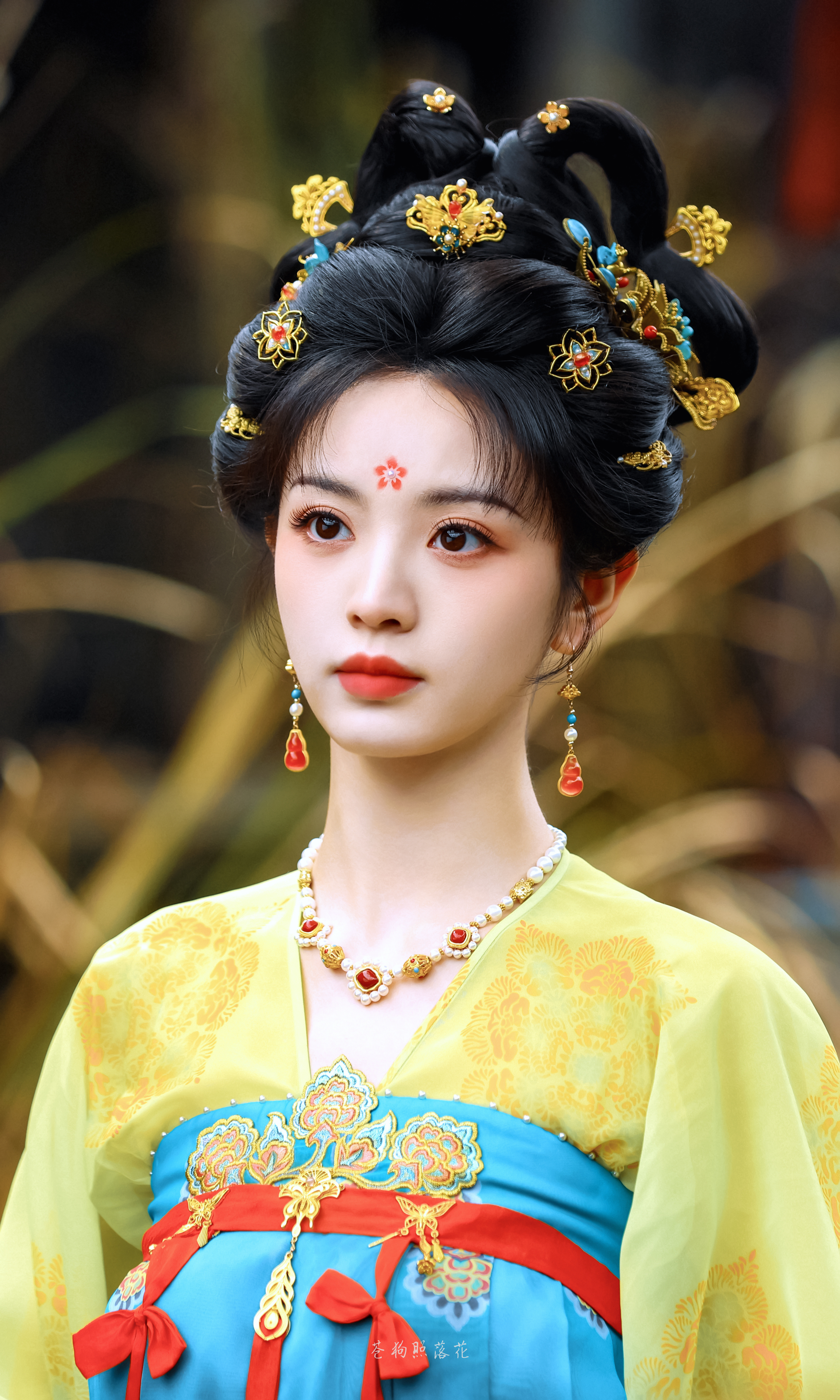 田曦薇 《子夜归》武祯☽ 壁纸-黄衣小合集✨✨✨▷双环髻+黄衣(黄蓝)+红披帛+红项链