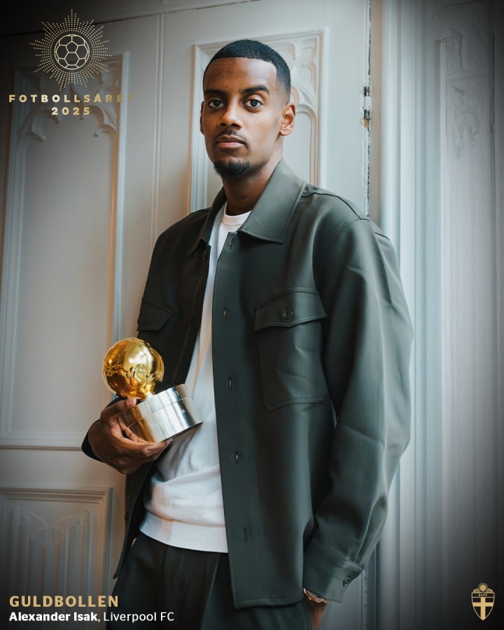 直播吧12月19日讯官方消息,利物浦前锋伊萨克赢得了2025瑞典金球奖,他上半年在纽卡的出色表现成为了获奖的主要原因。