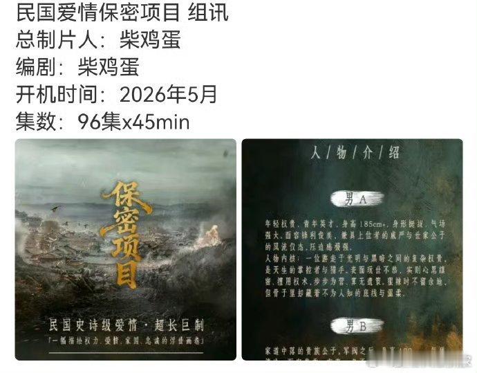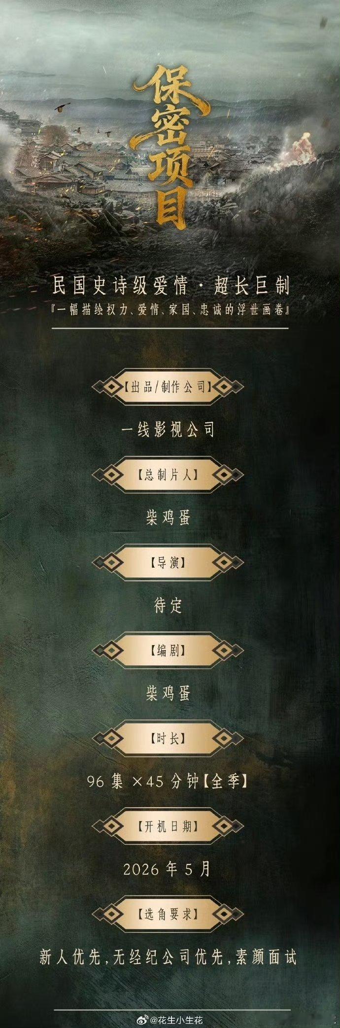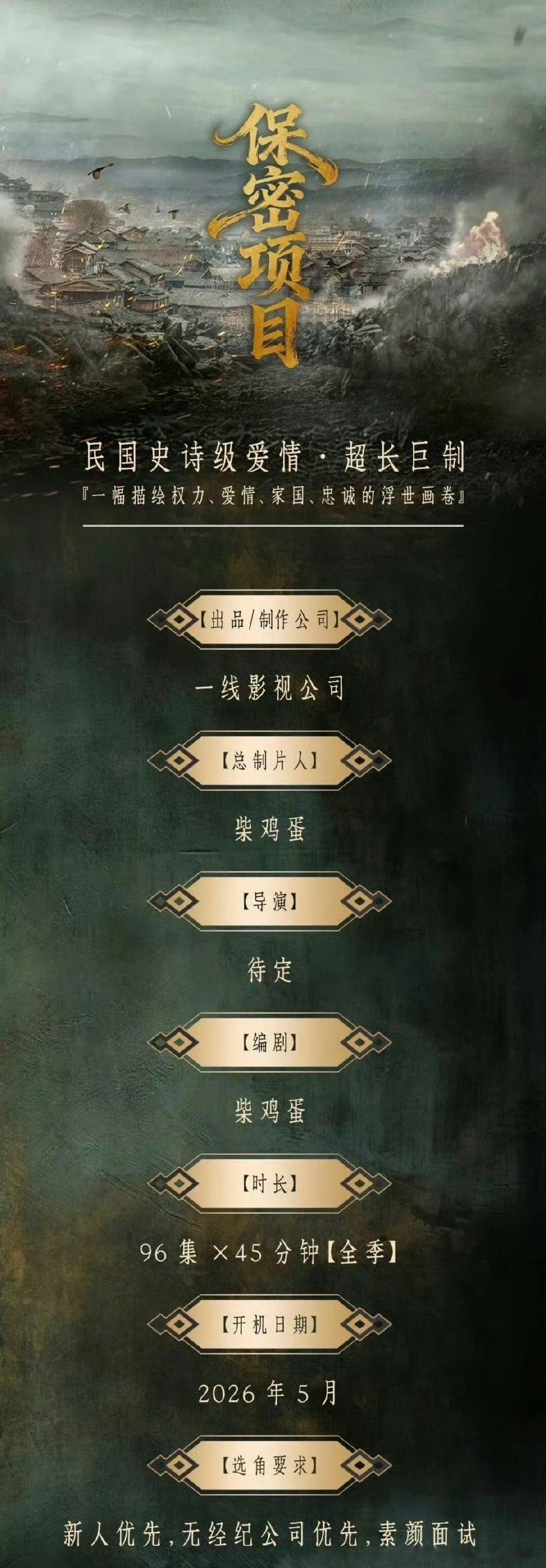 柴鸡蛋又有新剧要做了,民国史诗爱情一线ip,96集