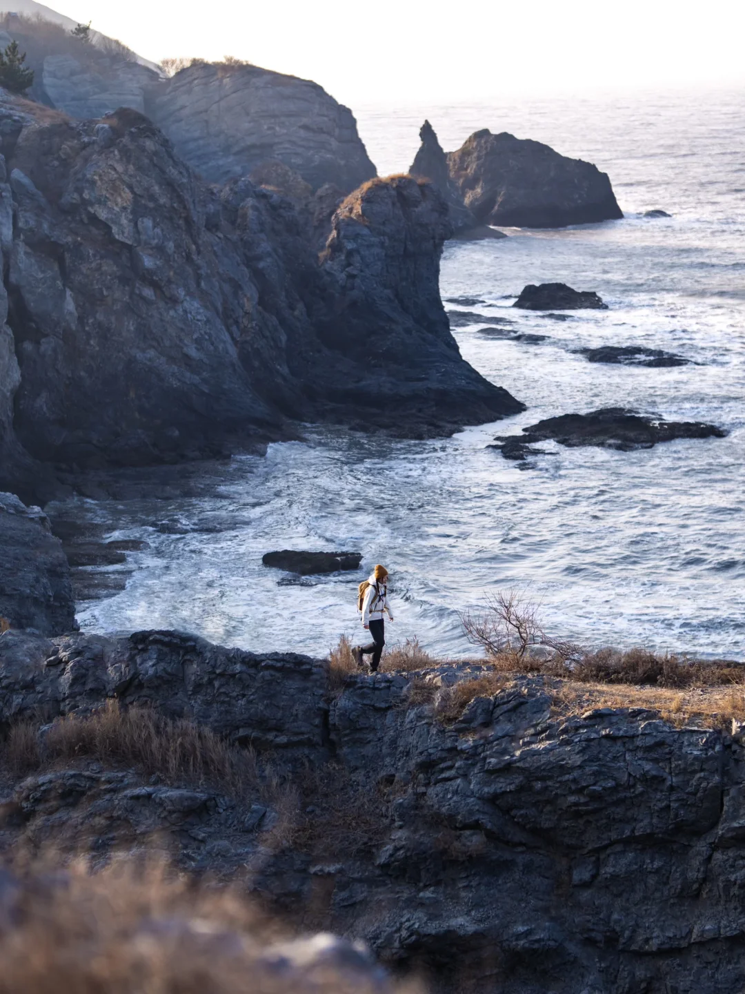 山在脚下,海在身边,哪怕是冬天,也一点不显单调。有那么一两个转角过去,视野突然被打开,远处延绵的断崖,让人一瞬间忘了自己还在国内[看R]