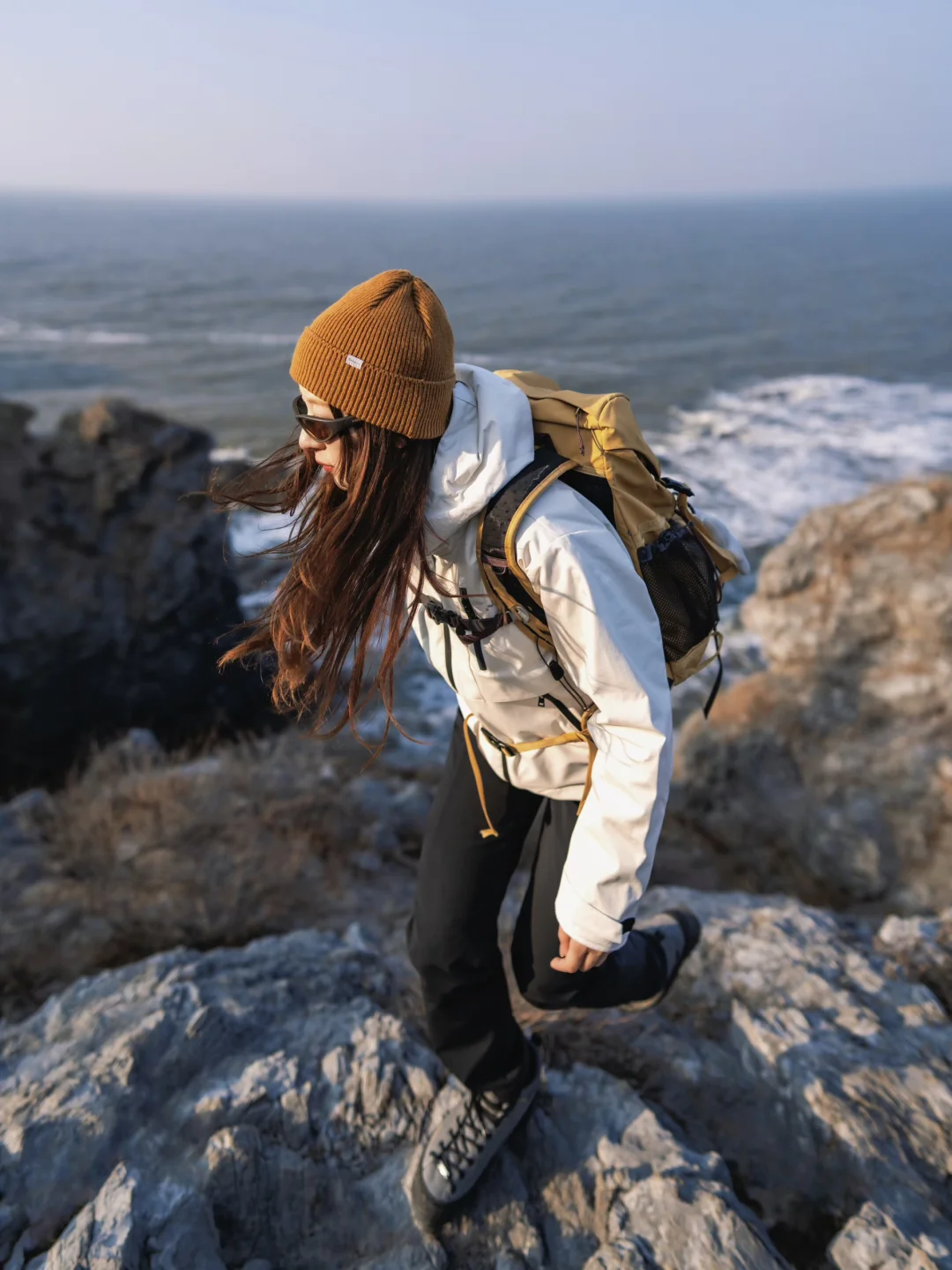 这次穿的是[向右R] AllReaday三合一冲锋衣,内搭只穿了一件速干,走起来轻轻松松,也不觉得冷~