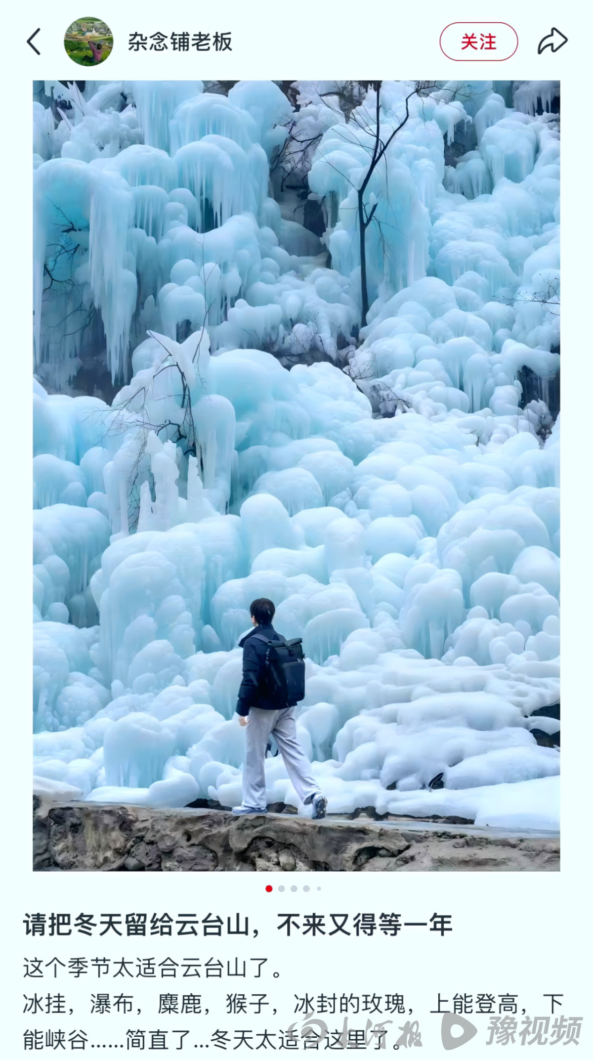 闯入冰雪仙境,拍出童话大片,那些在云台山冰雪世界的美好记忆,汇成这份“心动指南”,原来快乐如此简单!最美冬天就在触手可及的身边。冬日不重样,欢乐不打烊,下一个在云台山留下“封神”瞬间的,会是你吗?