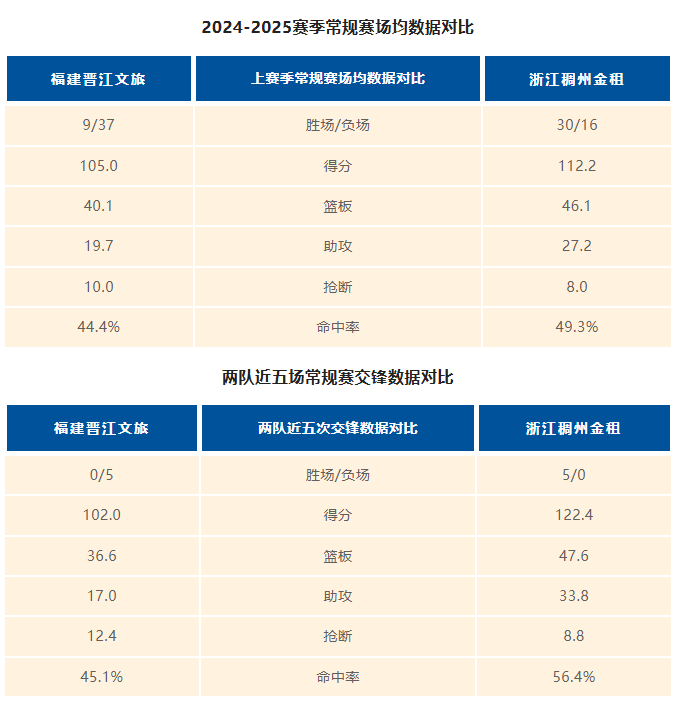 福建晋江文旅男篮与浙江稠州金租男篮历史上一共交手51次,福建晋江文旅男篮16胜35负。上赛季两队交手2次,福建晋江文旅男篮0胜2负。