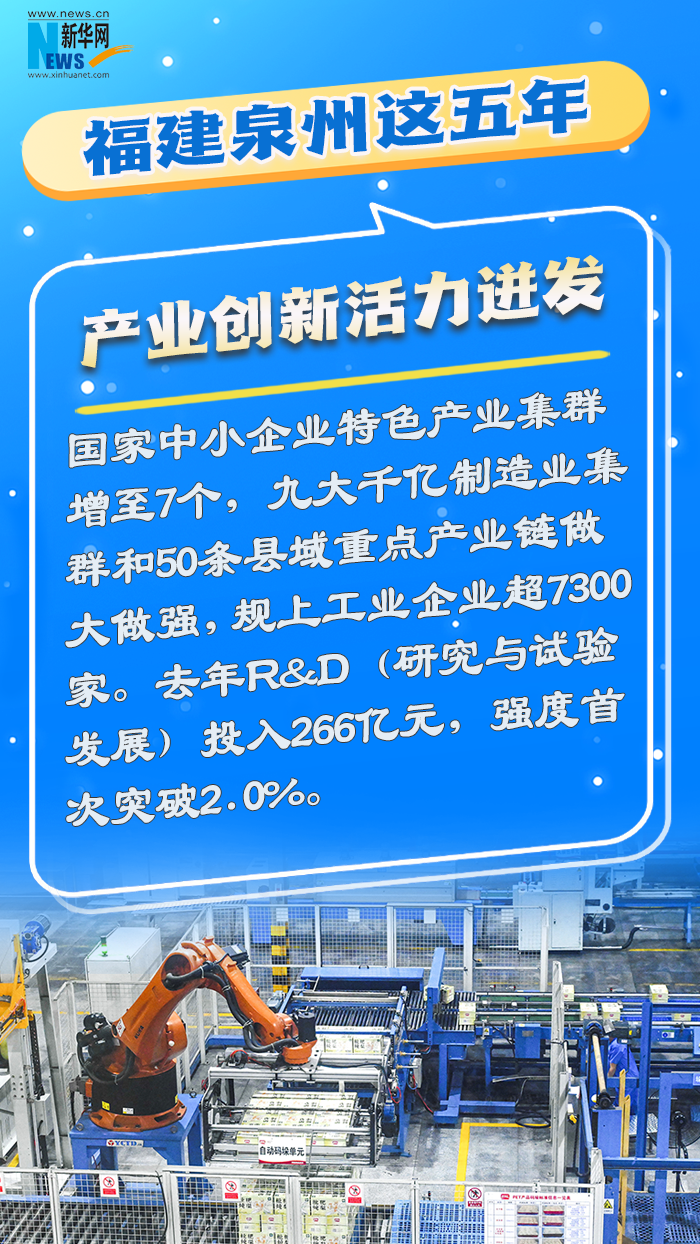 新华网福州12月19日电(蒋巧玲连雨欣)GDP连跨3个千亿台阶、R&D(研究与试验发展)投入首次突破2.0%、年度游客量突破1亿人次……“十四五”时期,泉州传承弘扬、创新发展“晋江经验”,大拼经济、大抓发展,海丝名城、智造强市、品质泉州建设取得新的重大成就。18日,福建省委宣传部召开“在中国式现代化建设中奋勇争先奋力谱写新征程新福建建设新篇章”系列主题新闻发布会(第五场),介绍并发布泉州市“十四五”时期经济社会发展总体情况。