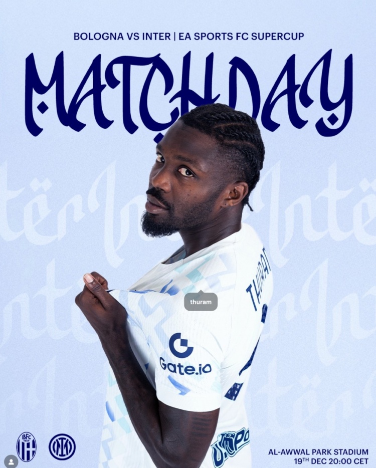 赛前,国米官方社媒为此役发布海报:海报中前锋小图拉姆单人出镜。