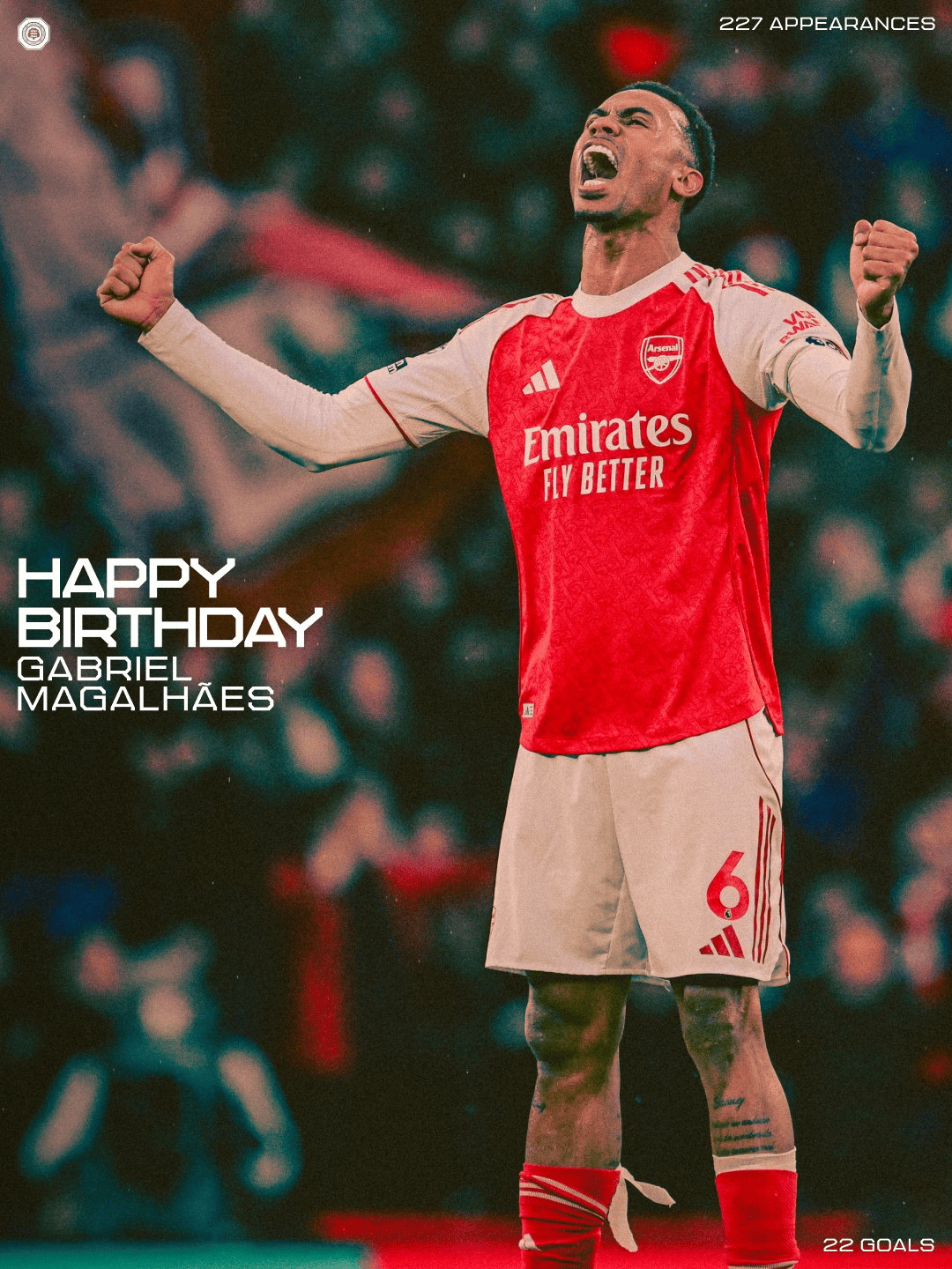 阿森纳官方发布海报,为这位防线上不可或缺的巴西中卫送上祝福。