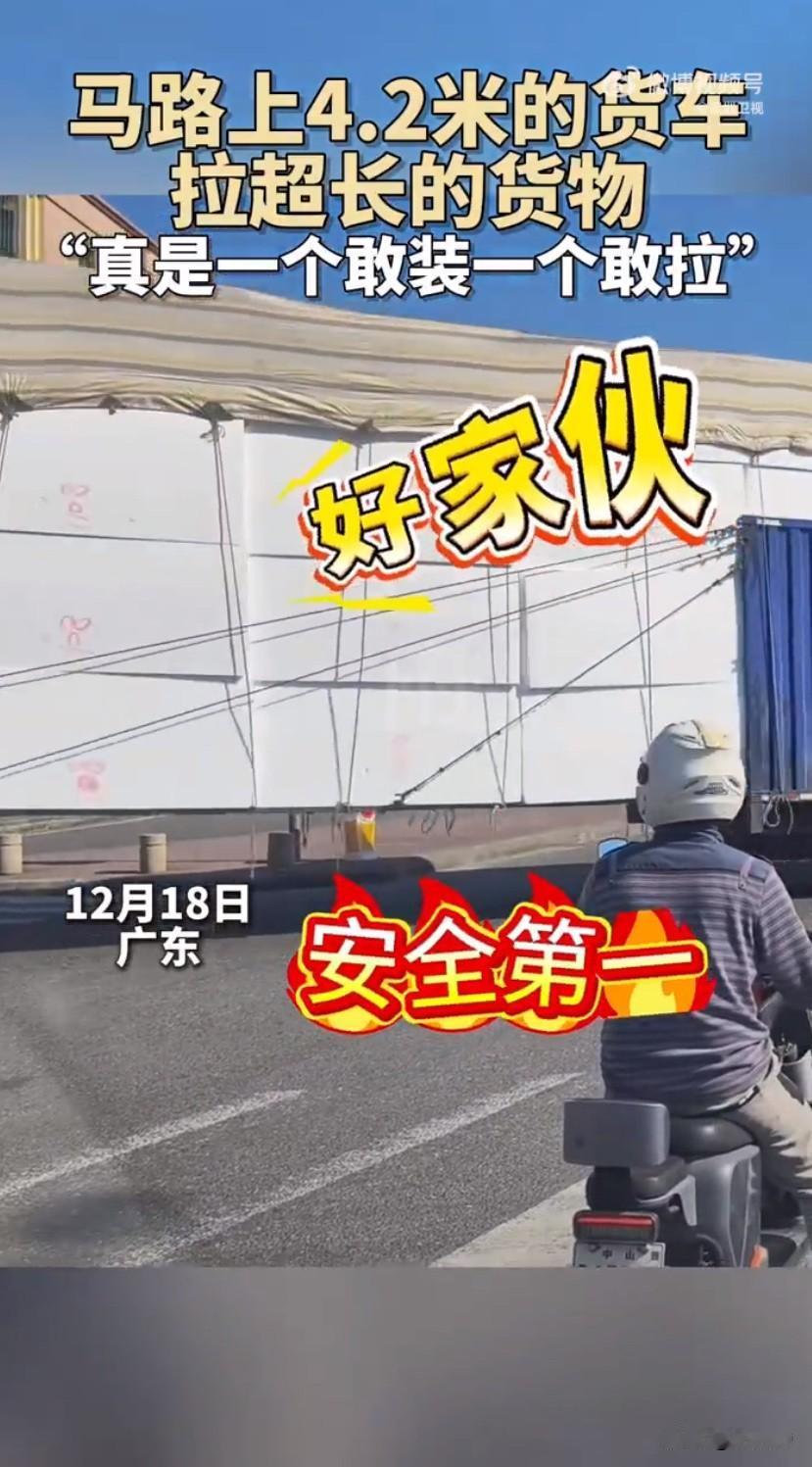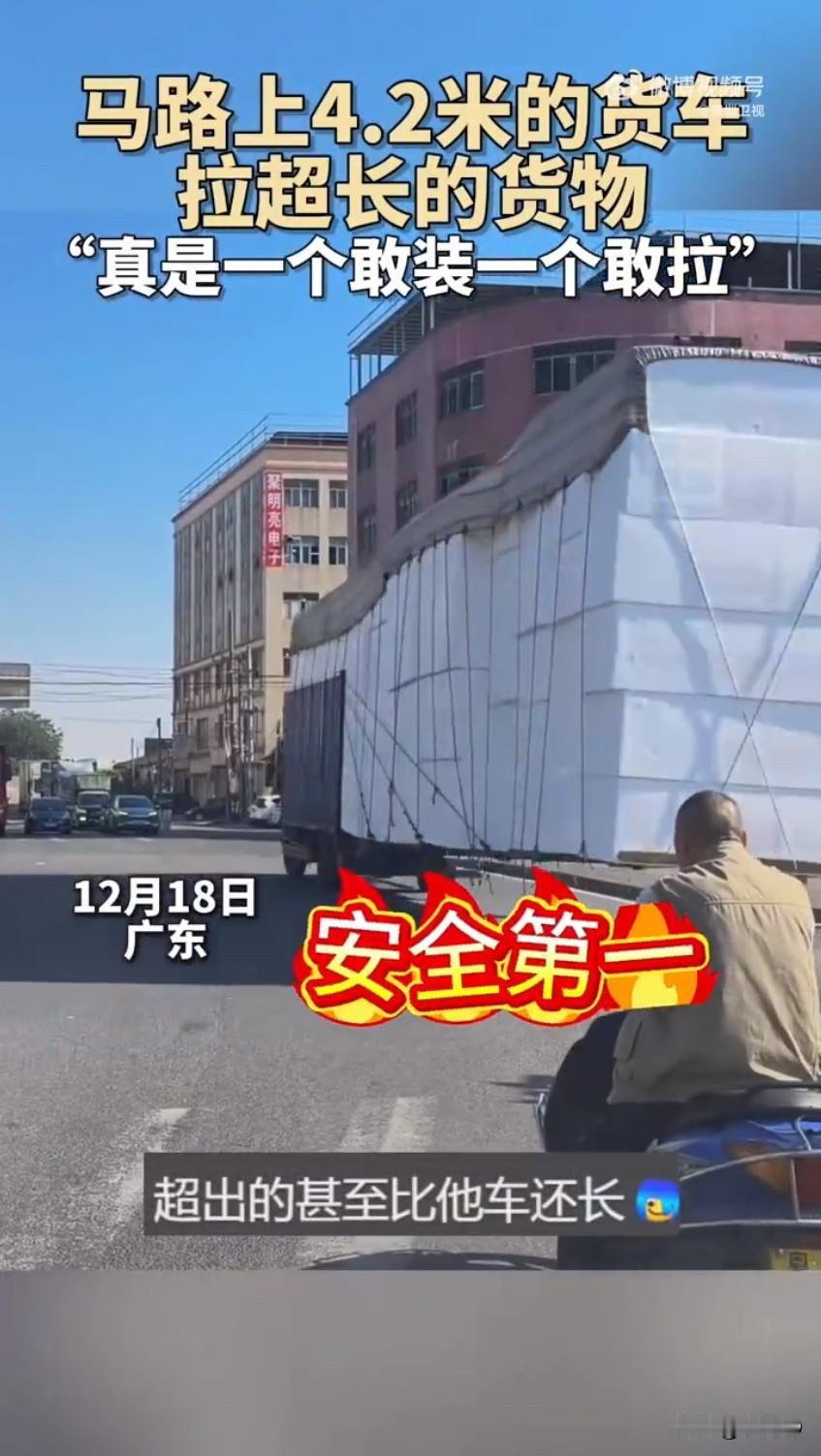 在广东的马路上,最近出现了一辆让人看了直捏冷汗的货车,不少路人路过时都忍不住拿出手机拍照,一下子就在网上火了起来,这辆货车本身是4.2米长的标准尺寸,可车上拉的货物简直离谱,伸出去的部分比车身还长,远远望去就像货车后面拖了个“大尾巴”,走在路上格外扎眼。有网友调侃说“真是一个敢装一个敢拉”,这话一点不假,不管是货主还是司机,胆子也太大了,完全把交通安全抛到了脑后。 据拍到的网友说,当时这辆货车在车流里慢慢挪动,超出去的货物不仅长,看着还不算稳固,路过的车辆都下意识地和它保持距离,生怕稍微靠近一点就出意外,尤其是货车转弯的时候,整个车身晃悠悠的,超长出的部分几乎要甩到旁边的车道,后面的小车只能远远跟着,不敢轻易超车,本来城市道路上车流量就大,这么一辆“超标”货车在中间穿行,简直就是移动的安全隐患,不管是对司机自己,还是对路上其他车辆和行人,都是极大的威胁。 可能有人觉得,不就是多装一点货、超出车身一点吗?能有多大事儿?其实这里面的危险可不少;首先,货车本身的盲区就大,货物超长之后,后视镜的视野全被挡住了,司机根本看不清后面和侧面的情况,很容易和其他车辆发生剐蹭。其次,超长的货物会让车辆重心偏移,行驶的时候特别不稳定,遇到紧急刹车或者转弯,很容易发生侧翻,而且超出的货物如果加固不到位,万一在路上掉下来,后面的车辆根本来不及反应,很可能引发连环事故;另外,这种超长货车还特别占车道,会造成交通拥堵,要是不小心卡在限高杆或者天桥下面,那麻烦就更大了,整条路都得堵半天。 其实这种货车超限载货的行为,早就明确违反了交通法规,按照规定,货车载物的长、宽、高都有严格标准,不能随便超出,一旦违规,交警会依法进行处罚,根据超限的严重程度,罚款从几百元到几万元不等,要是一年内多次违规,还可能被吊销车辆营运证,司机和货主之所以敢这么做,大多是心存侥幸,觉得路程短、不会被查到,或者想多装一点货多赚点钱,可他们忘了,安全永远比利益更重要,一旦出了事故,赚的那点钱根本不够赔偿,还得承担法律责任,到时候后悔都来不及。 路上的每一条交通规则,都是用无数教训换来的。不管是货车司机还是其他车主,都得把安全放在第一位,不能为了一时的方便或者利益就违规操作。希望这次的事件能给更多人提个醒,货车载货要守规矩,不超限、不超载,这样才能既保证自己的安全,也让路上的每一个人都能安心出行。 来源:深圳卫视