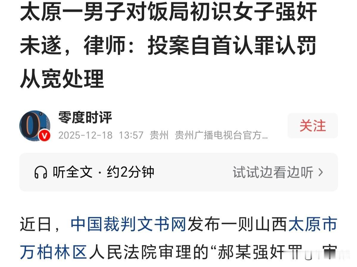 山西太原,一男子跟朋友聚餐,酒桌上认识一年轻女子,俩人互相欣赏加了好友。转天,男子约女子吃饭,还给对方转了1500元红包,女子欣然接受,还给男子发手表链接,男子觉得有戏,带女子去酒店开了房。眼看就要发生点故事,女子突然强烈反抗,最后没办法只能作罢。没想到女子转头就报了警,男子后悔不已,法院这样判的! 冲动是魔鬼!这句话用在郝某身上,简直再贴切不过。 今年1月6号晚上,郝某跟着老乡、朋友一起聚餐,酒桌上认识了青春靓丽的女子刘某。 郝某对刘某一见钟情,席间更是使出浑身解数,说话做事满是讨好献殷勤,俩人眉来眼去交谈甚欢。 为了能有好事发生,郝某特意要了联系方式,心里盘算着怎么能再拉近点关系。 第二天,他立马主动约刘某吃饭,为了有个好印象,全程表现得成熟稳重,温文尔雅,一顿饭下来,两人越聊越投机。 饭后,郝某直接提议带刘某去酒店开个房间坐坐,聊聊天,加深一下了解。 刘某心里清楚郝某的想法,却还是点头同意了。 但刘某提出,去可以,但就单纯聊聊天,别的啥也不能干。 郝某一看有戏,乐得合不拢嘴,满口答应,随后就带着刘某去酒店开了房。 进了房间,两人先闲聊了一会儿,气氛渐渐变得暧 昧。 郝某觉得机会来了,为了表诚意,直接给刘某转了1500元红包。 刘某收下红包后,还发了一个手表的购买链接给郝某,明摆着让郝某买了送她。 看到对方收了钱、还主动要礼物,郝某以为刘某这是默许了,要和她发生关系。 然而,他没料到,刘某直接一口拒绝了他。 可他却以为女孩子假装矜持,欲擒故纵,郝某脑子一热竟对刘某上下其手。 刘某拼命反抗,身上都被拉扯出不少伤痕,郝某折腾了半天也没能得逞,最后只能不甘心地放弃。 原以为这事就这么过去了,没承想几天后,郝某突然接到了警方的电话,这才知道,刘某报了警。 得知消息后,郝某知道这事瞒不住,只能主动到案配合调查,把事发的前因后果一五一十地说了出来。 警方立案侦查清楚后,认定郝某的行为已经构成了犯罪。 不过,考虑到郝某因为刘某的反抗没能得逞,属于犯罪未遂。 到了庭审现场,郝某依旧认罪认罚,他的辩护人也帮着争取从轻量刑。 认为郝某不仅有自首、未遂、认罪认罚的情节,还是初犯、偶犯。 更关键的是,被害人刘某明明知道郝某的意图,还跟着去酒店、收红包、要礼物,对案件的发生也有过错,希望法院能再进一步从轻处罚。 可法律自有公断,不是说随便找个理由就能算数的! 被害人故意做违背社会伦理或者违反法律的事,侵犯了被告人的合法权利,这种情况才能算被害人过错。 刘某在和郝某去酒店之前,就已经明确说过只是聊聊天。 而且整个过程中,她都明确拒绝和郝某发生关系,身上的伤痕也能证明她当时的反抗。 所以法院认为,刘某作为被害人,并不存在刑法意义上的过错,辩护人的这个意见也没被采纳。 有人觉得,郝某太心急,认识第二天就要发生点什么,感情得慢慢培养。 也有人觉得,刘某也有问题,刚认识就和人家吃饭,收红包,发手表链接,要礼物,还跟着去酒店。 郝某本来以为花点钱、送点礼物,对方就会默许自己的行为。 那么,郝某的行为,从法律的角度,该如何认定呢? 《刑法》第236条:以暴力、胁迫或者其他手段强奸妇女的,处三年以上十年以下有期徒刑 。 郝某故意安排想与刘某发生性关系,且刘某事前声明“只聊天”,仍在被拒后强行实施,违背妇女意愿 。 郝某实施强行行为,刘某激烈反抗并留有伤痕,虽然未得逞,但不影响罪名成立 。 郝某认为,刘某收红包、要手表是默认同意。法律以事发当时是否明确拒绝+反抗为核心。 刘某全程拒绝且有伤痕佐证,郝某误以为默许不改变违背意志的本质。 《刑法》第23条:已经着手实行犯罪,由于犯罪分子意志以外的原因而未得逞的,是犯罪未遂。对于未遂犯,可以比照既遂犯从轻或者减轻处罚。 郝某已着手实施暴力行为,因刘某反抗未完成侵犯,属于“意志以外原因未得逞”,属于强 J未 遂。 郝某主动到案、如实供述、认罪悔过,认罚诚恳,形成多重从宽情节。 最终,法院判处郝某有期徒刑一年3个月。 对于郝某的行为,你怎么看呢?欢迎评论留言! @静心法谈 学法辨是非,慬法不吃亏。
