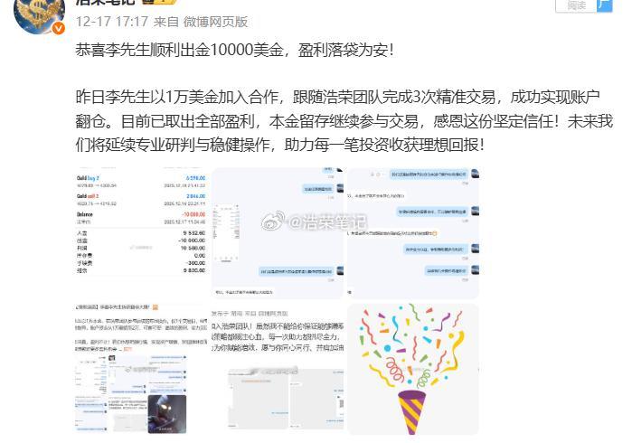 恭喜李先生第二次顺利出金2w美金,盈利落袋为安!口碑是在市场立身的招牌,实力便是市场立足的根本!本周的交易我们已经取得十分理想的收益效果,我相信后面的收益也只会越来越可观。黄金 金价