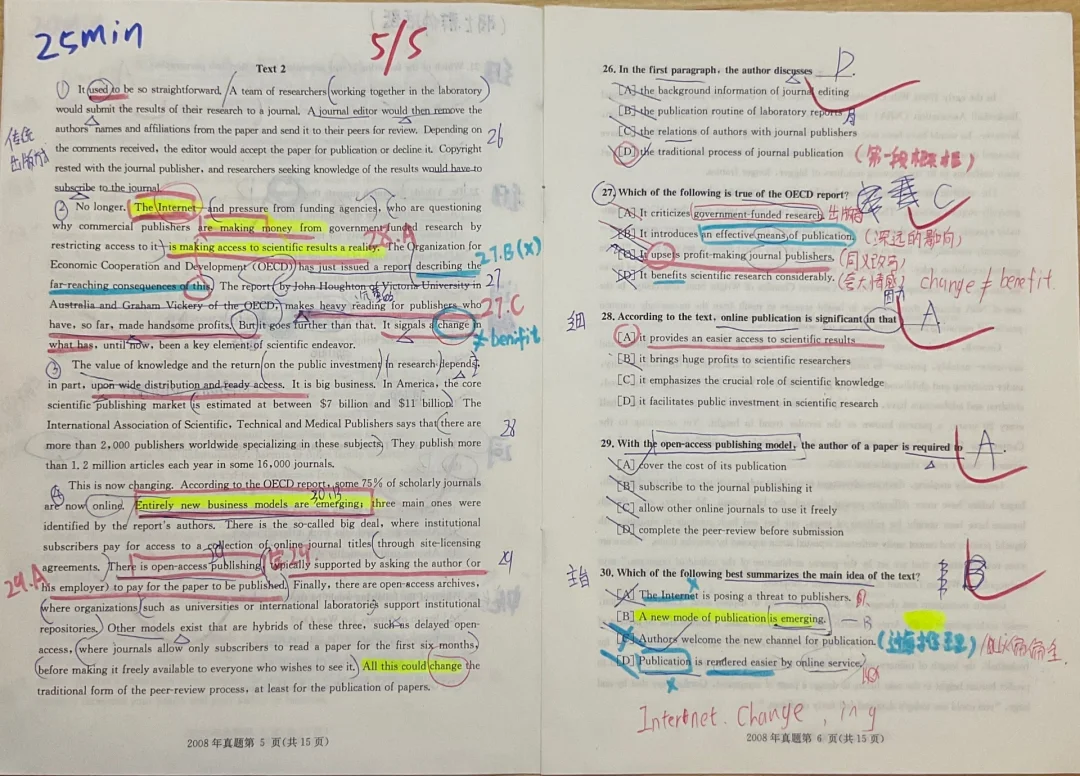 第4⃣️段,指出在线出版新模式,正面展现其双重影响。(打击出版商、冲击传统评审)