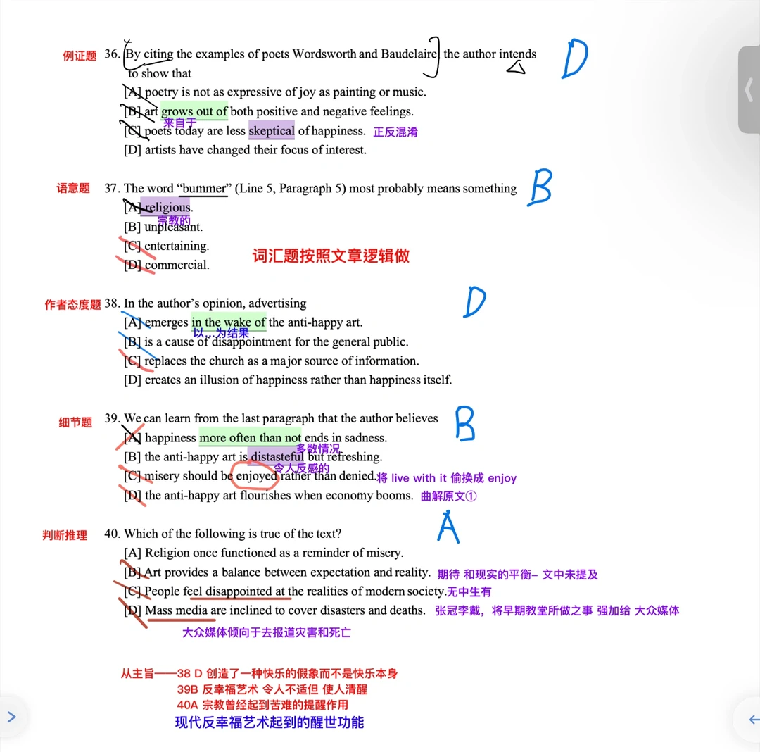第4⃣️段解释“现代社会充斥着太多可恶的幸福”主要指向:商业广告对幸福的极端化/意识形态化。