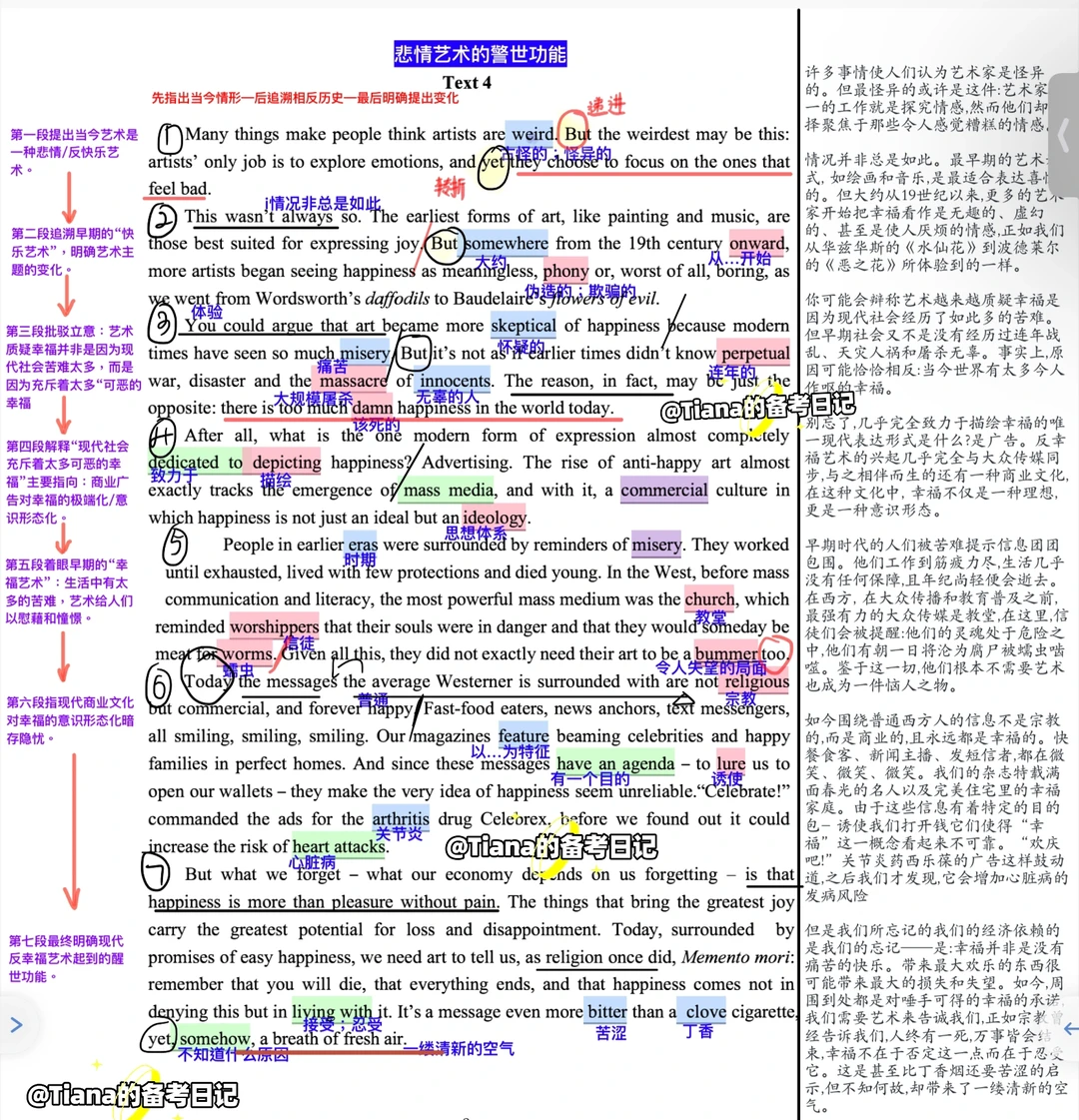 第5⃣️段着眼早期的“幸福艺术”:生活中有太多的苦难,艺术给人们以慰藉和憧憬。