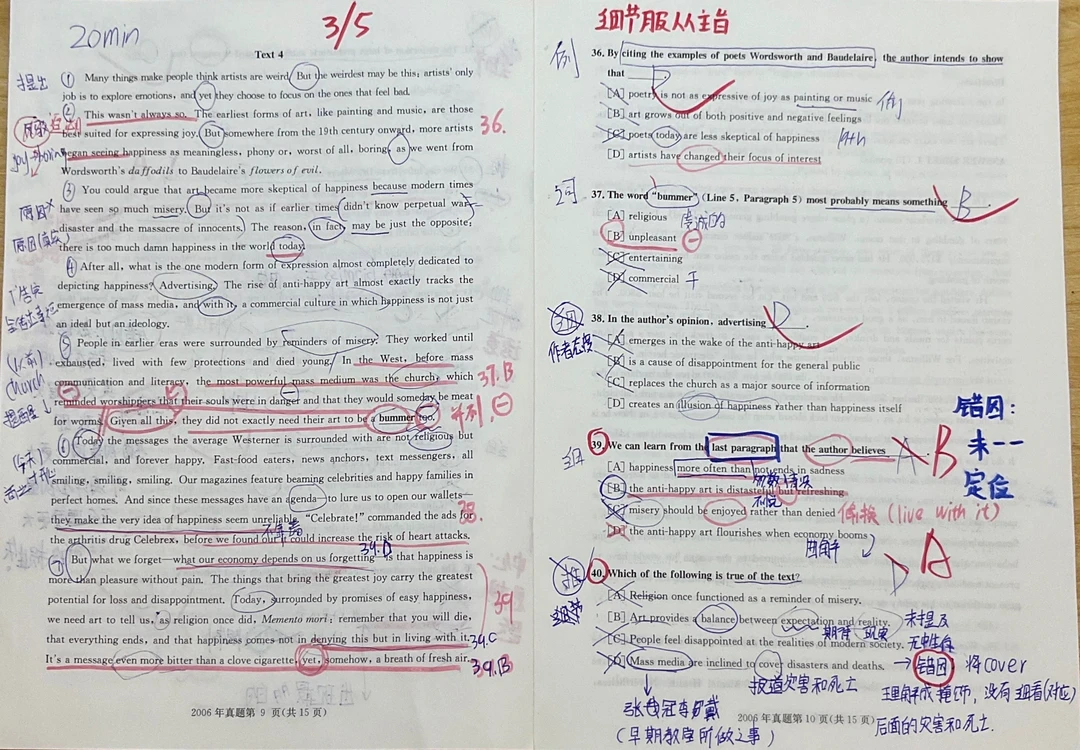 🌟 本文摘自Timed时代周刊》2005年1月9日一篇题为TheArtofUnhappiness(悲情艺术)的文章。文章分析了艺术主题发生变化(从“快乐”到“反快乐”)的原因,揭示了艺术主题随时代变化的必然趋势:早期的人们周围尽是苦难提示,“快乐艺术”给人们以幸福的憧憬:现今商业社会充斥着虚假的快乐,“反快乐艺术"给人以清醒的空气。全文基于对比,举例,因果等论证层层设疑、步步深人,结构紧凑,内容深刻。