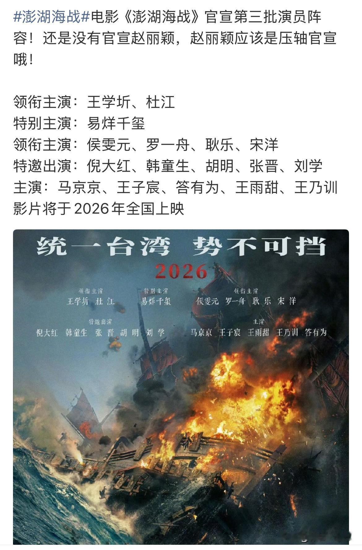 12月19日,赵丽颖到底是主演还是客串? 电影《澎湖海战》导演官宣第三波演员阵容