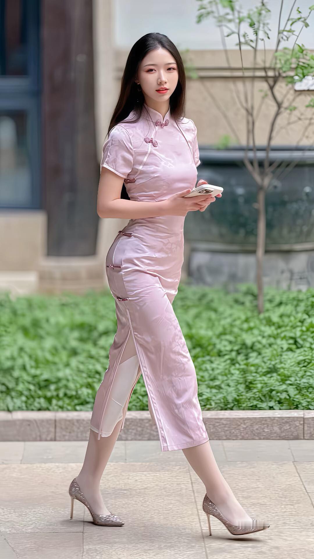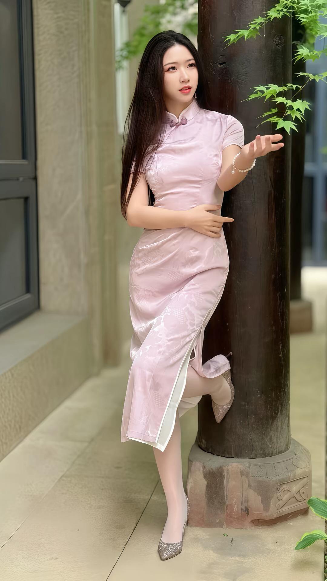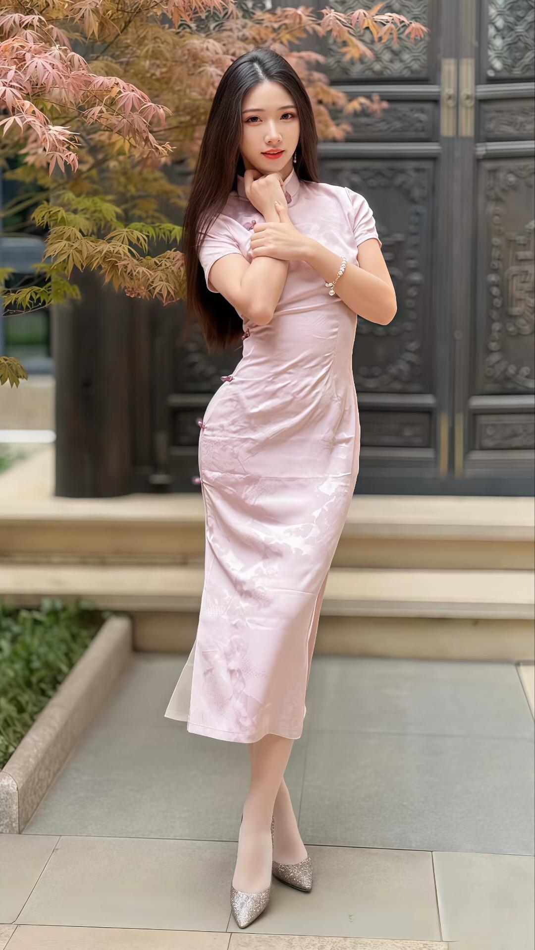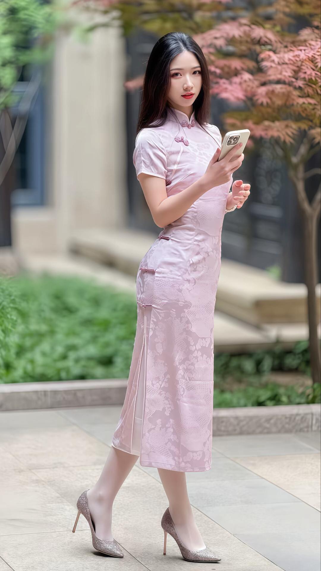 粉色旗袍肤色丝袜高跟凉鞋