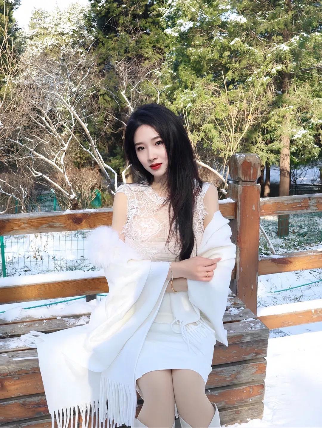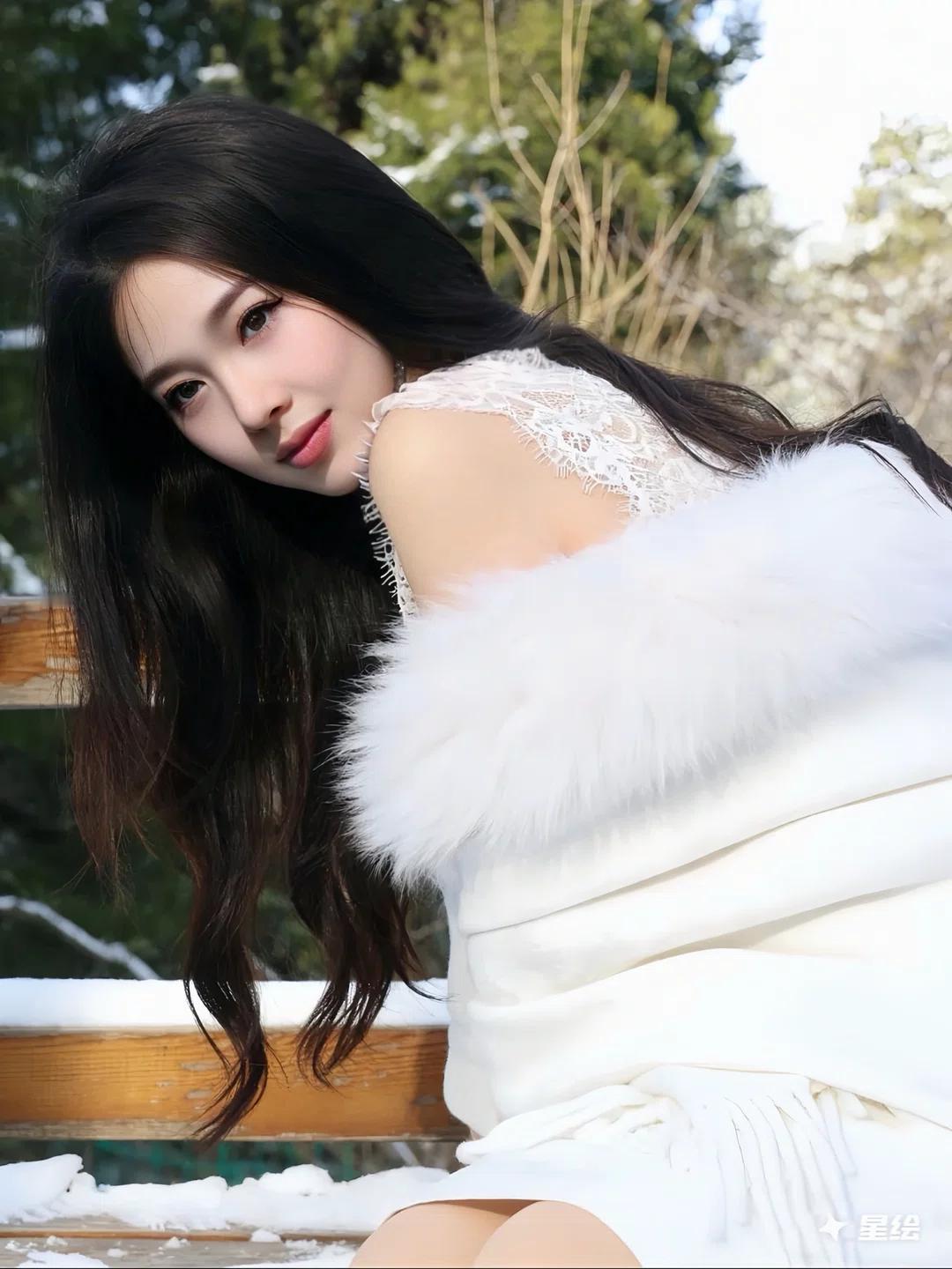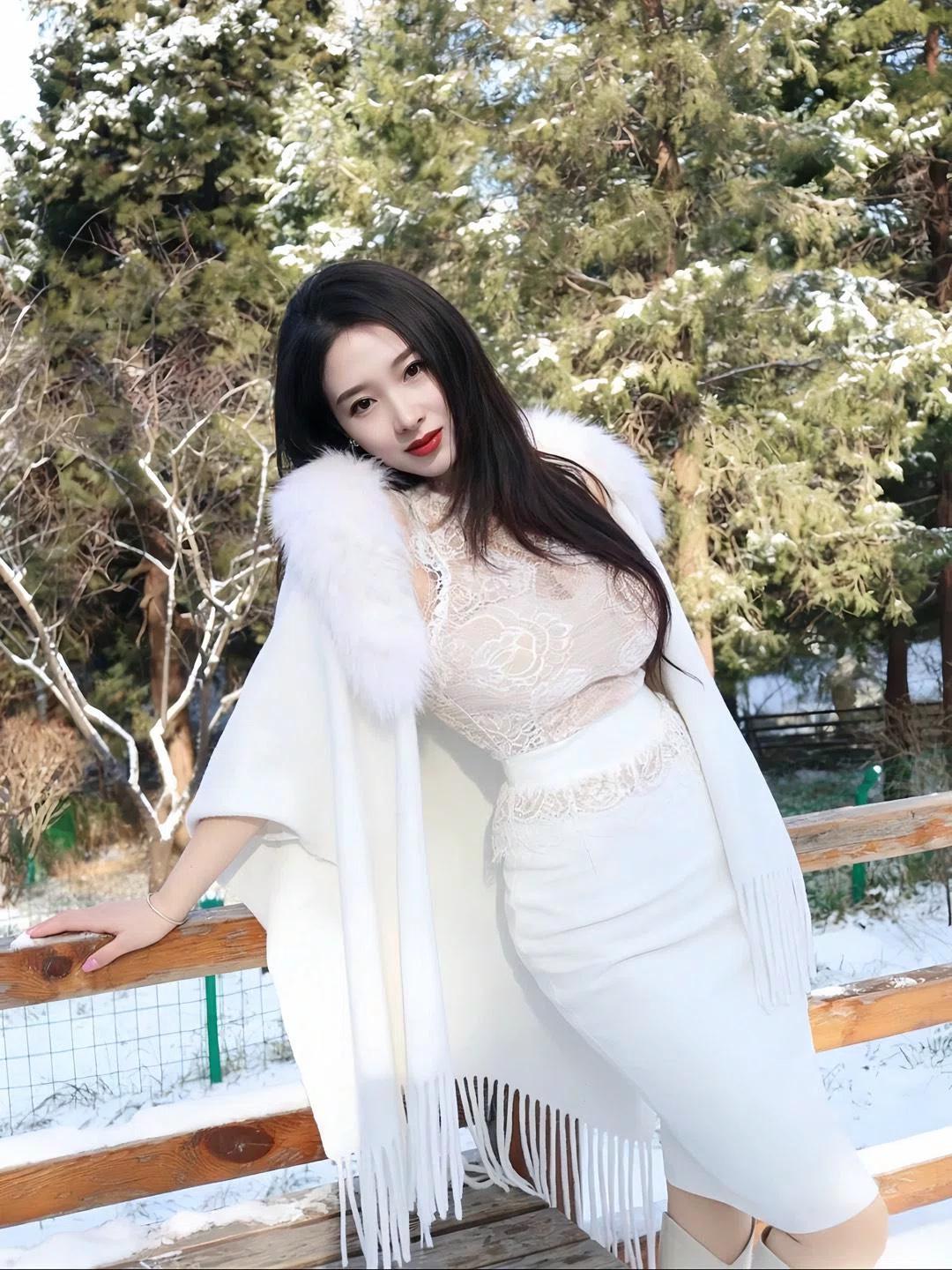 《雪境佳人》 松枝托着初雪簌簌轻颤时,她正倚着赭色木栏整理流苏披肩。霜色蕾丝领口蜿蜒出银线绣的忍冬纹,指尖拂过处,细雪便沾着貂绒滚边簌簌跌落。围栏下的积雪压弯了枯草丛,远处雾凇在暮色里洇成淡青的墨痕——这分明是宋徽宗《雪江归棹图》里走出的仕女,偏生耳畔晃着的珍珠坠子又沾着巴黎街头的晨露。 记得去年深冬在北海道美瑛町,我也见过这般雪中独立的身影。彼时青池刚覆上薄冰,穿白无垢的艺伎踩着二十公分下驮走过雪原,腰间橘色带缔在纯白天地间灼灼如焰。而此刻眼前人将东方韵致裁成了现代轮廓,羊绒裙摆斜裁出的弧度,恰似富士山麓被风揉皱的云絮。 她忽然弯腰去够栏外松枝,流苏披肩垂落时惊起细雪纷扬。这让我想起京都西阵织作坊里的老匠人,用金箔捻线的梭子正穿过唐织机——那些传承千年的纹样,此刻正化作她衣襟上跳动的光斑。雪粒落在睫毛的瞬间,她掏出口红补妆,朱色划过苍茫雪野,像白瓷盘里滚落的杨梅,又像故宫红墙上剥落的岁月。 暮色渐浓时,她转身走向雾霭深处。浅咖高跟鞋在雪地上烙下新月般的痕迹,貂绒披风扫过的雪堆里,露出半截冻僵的忍冬藤。或许每个雪季都会封存这样的惊鸿一瞥:当机械腕表遇见刺绣怀表,当年年雪相似的轮回里,总有人执意要裁一袭独属自己的月光。 围栏下的积雪又厚了三分,松枝上的雪团坠地时,我忽然听见十二单衣窸窣的声响。那个捧着红泥手炉的平安朝贵族少女,与眼前这个呵着白气刷手机的现代姑娘,隔着千年时光在雪镜中对望。她们衣褶里藏着的,何尝不是同一种对抗虚无的倔强?