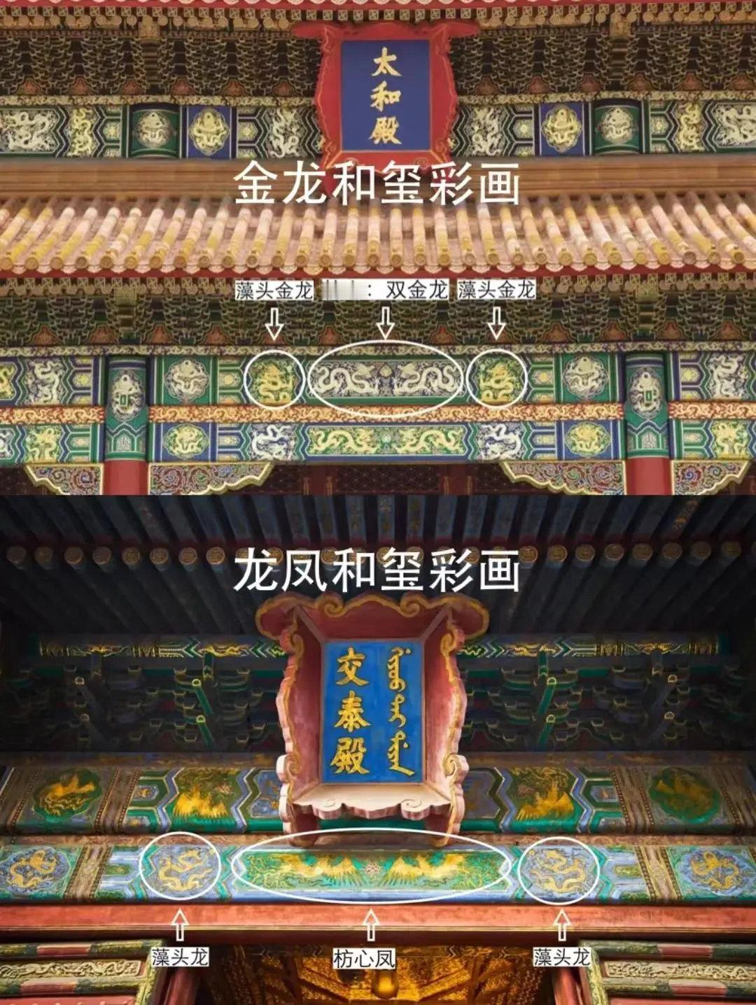 家人们谁懂啊!故宫清代彩画才是隐藏美学大师!和玺彩画金光炸裂,旋子彩画纹样卷到离