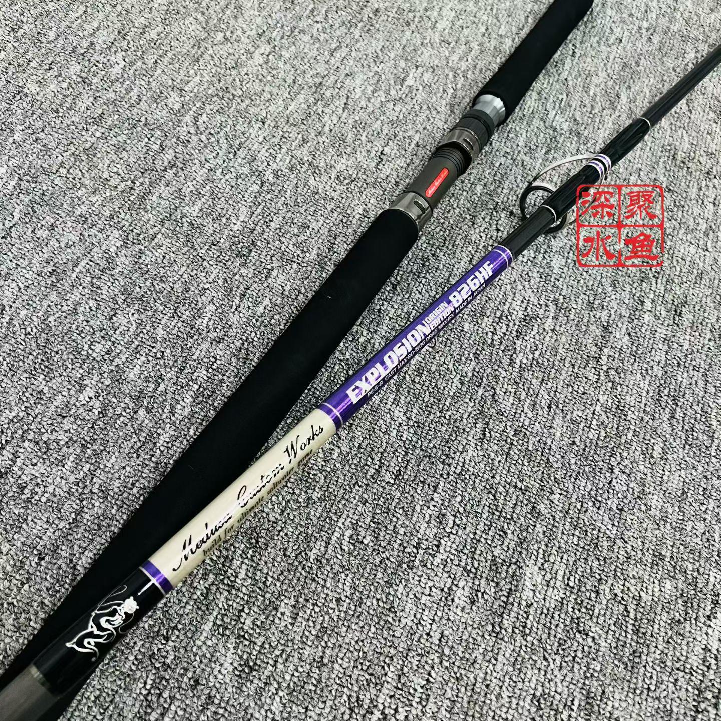 MC WORKS'高端定制版波爬铅笔杆。MC WORKS' EXPLOSION ORIGINAL 826HF 满天星紫艺妓定制版 全鱼种多功能船用铅笔波爬杆 全长:8.2ft(2500㎜) 饵重:80g~150g PE:5~8 腰力:15㎏ 钛&钢组合导环既降低了整体杆身的重量,也增强了导环的腐蚀性,同时提高了散热性 HF是 MC WORKS' 多功能全鱼种铅笔杆,力量与轻量化的完美结合 同时也是EXPLOSION系列中最新的开发产品,继承了EXPLOSION系列的高刚性的特点
