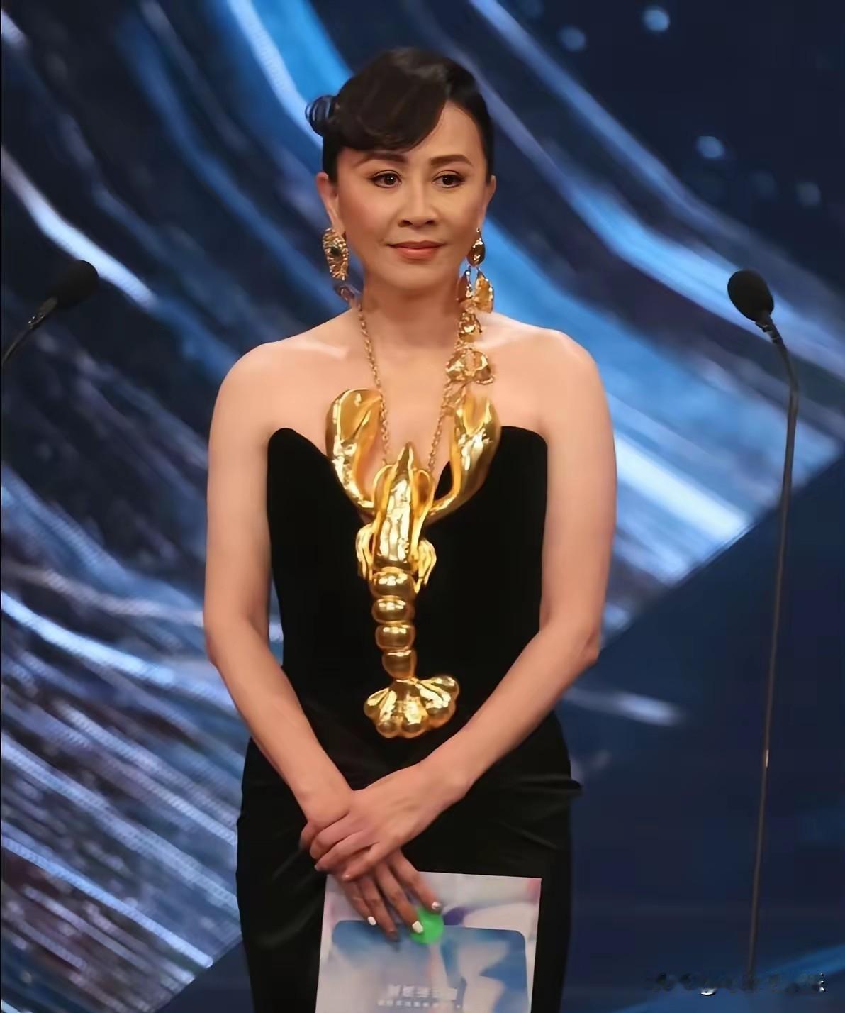 刘嘉玲真是有钱人 刘嘉玲耳朵上戴的,胸前戴的,这才叫豪横。这只黄金大虾,应该不是克计是斤计吧?我的妈呀,这得多少钱呀!