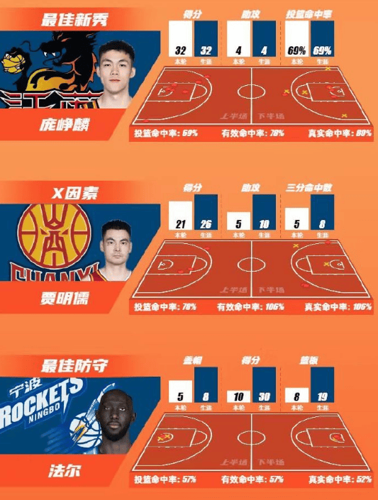 第3轮最佳新秀由来自江苏男篮的庞峥麟获得;