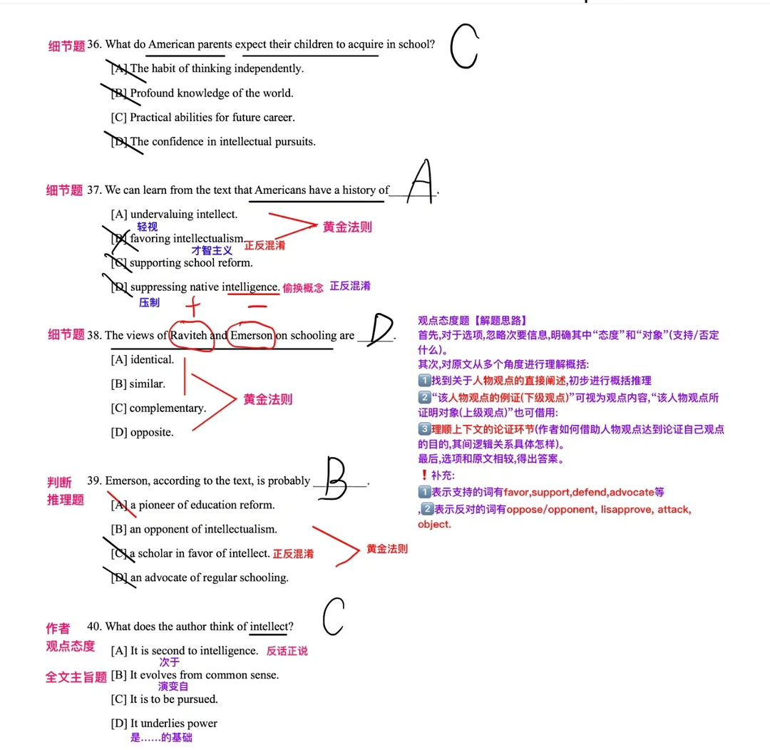 1⃣️找到关于人物观点的直接阐述,初步进行概括推理