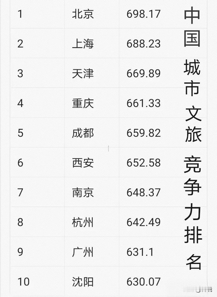 有数据显示“中国城市文旅竞争力排名”。 北京、上海领先,沈阳排进前十。