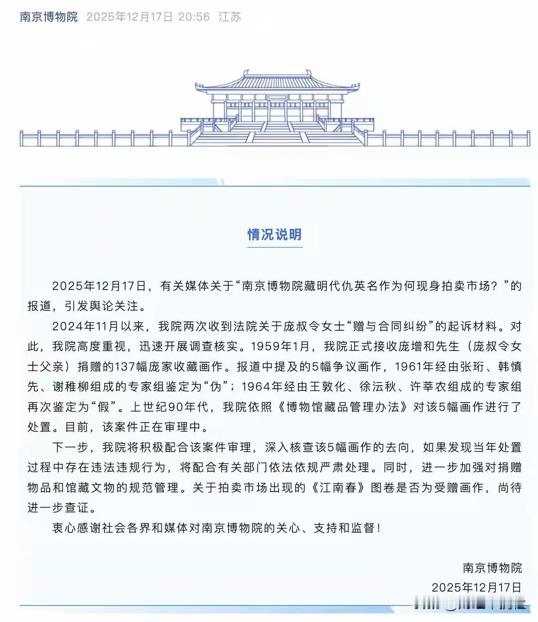 南京博物院这事儿,越扒越让人生气! 两任院长 20 年内相继轻生,哪是巧合? 曾昭燏,放弃英国工作回国,反对文物迁台。 特殊年月古籍被烧,她扑上去抢得满脸是血,跳塔时还攥着追回的唐三彩碎片。 姚迁,为护六朝石刻抱碑坐三天三夜,举报文物倒卖反遭诬陷。 中纪委后来为他平反,但好院长再也回不来了,多让人惋惜! 可现在竟有人监守自盗,把博物馆文物拿去拍卖! 随便一件文物的价值,都够判重刑,这胆子也太大了! 背后肯定有利益链条,必须深挖! 要是不严查严打,以后全国博物馆可能都难有真品了! 曾昭燏、姚迁用命守护的珍宝,绝不能成倒卖者的摇钱树。 守住文物,就是守住这些护宝人的心血,守住咱们的文化根!南京博物院