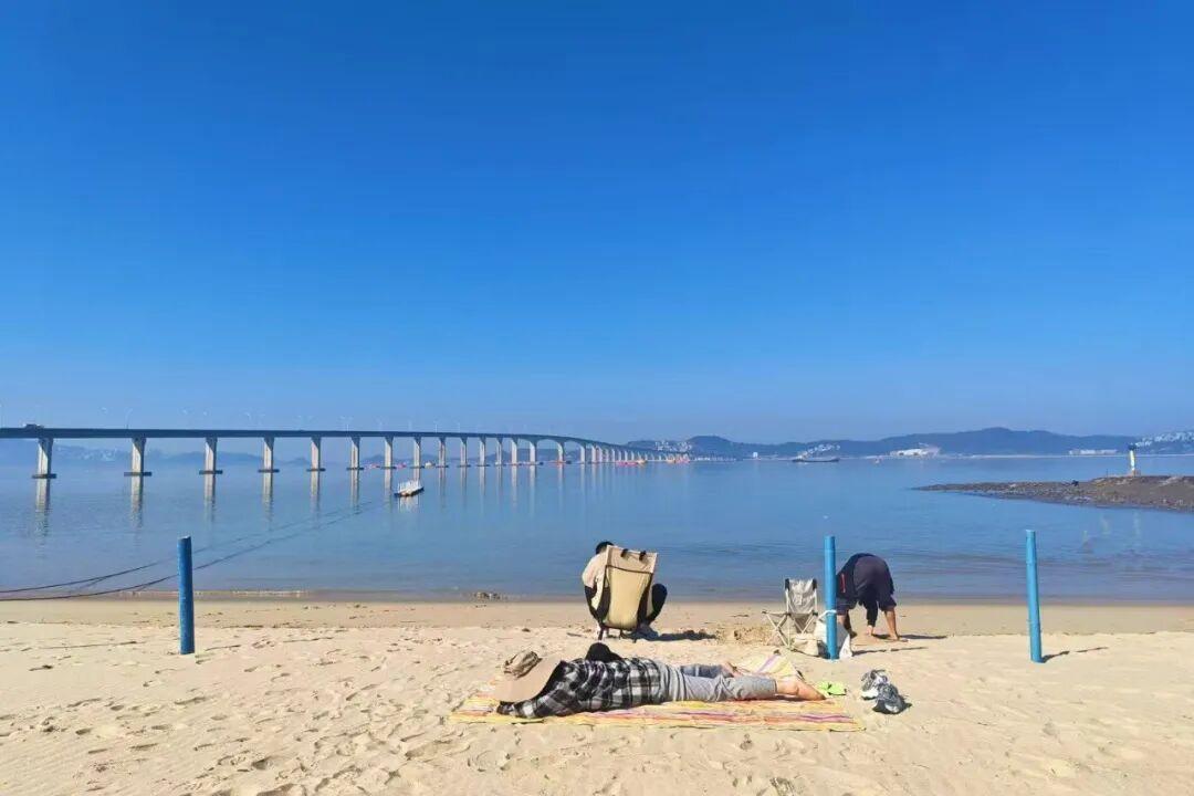 天气晴好,市民王女士一家去洞头海边玩耍。王女士供图