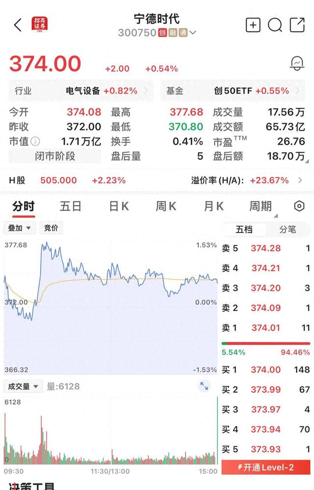 宁德时代市值1.71万亿。