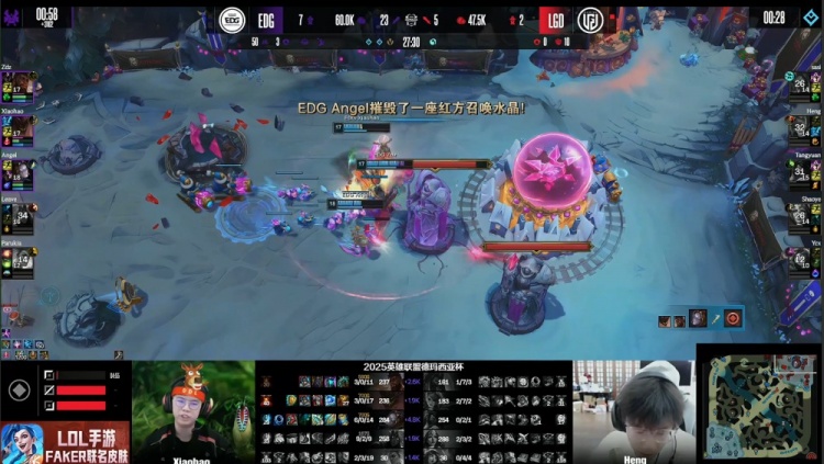 [19:08]EDG入侵LGD野区逮捕Heng,后者战绩来到1-4-1,EDG经济领先7k。