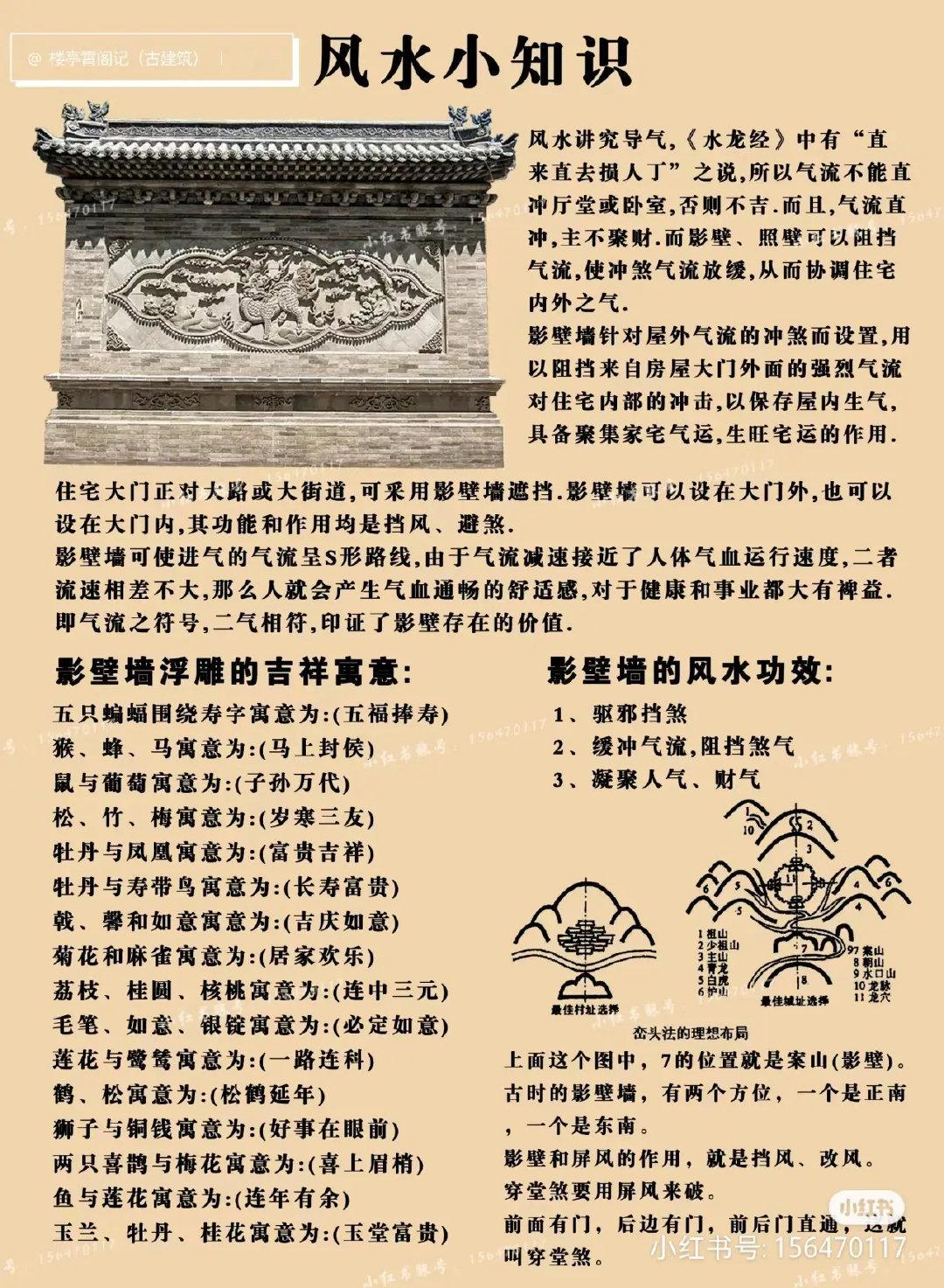 家人们谁懂啊!古代人早早就玩起“空间结界”了——影壁(也叫照壁/萧墙)这玩意儿,简直是四合院的颜值担当+功能小能手!它就像进门第一道光,既挡住门外视线当屏障,又能用雕刻花纹把门面撑得老高级~结构贼简单:顶(壁顶)、身(壁身)、底(壁座)三部分,跟搭积木似的。关键是和照壁的区别:影壁更“依附”(比如夹在门两侧),照壁更独立(中轴线上单独一段墙),别再傻傻分不清啦~作用也超实用:挡视线、美装饰、吸噪音、分空间,堪称古代版“室内设计神器”!材料更是卷上天:石影壁硬气、砖影壁家常、木影壁文艺,还有琉璃的blingbling款(故宫九龙壁就是顶配)!形式上更是脑洞大开:一字影壁最常见,八字影壁凹造型,过街影壁、跨河影壁直接把“氛围感”拉满~下次逛胡同看到这种老墙,你就是最懂行的崽!涨知识了(没有话题标签,纯科普)