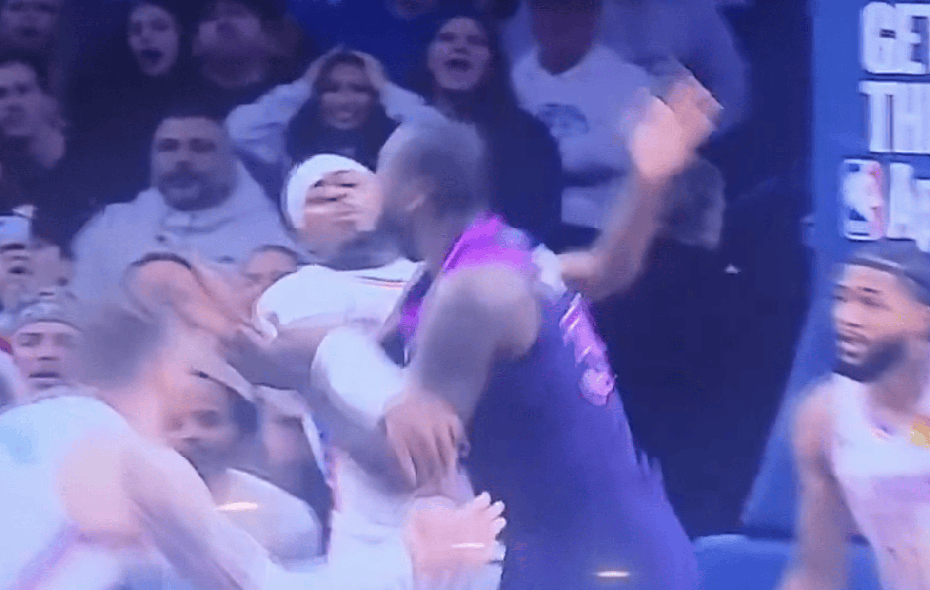 爱德华兹和兰德尔连续在篮下被侵犯,但是裁判没有吹罚,随后芬奇因喷裁判被罚出场。