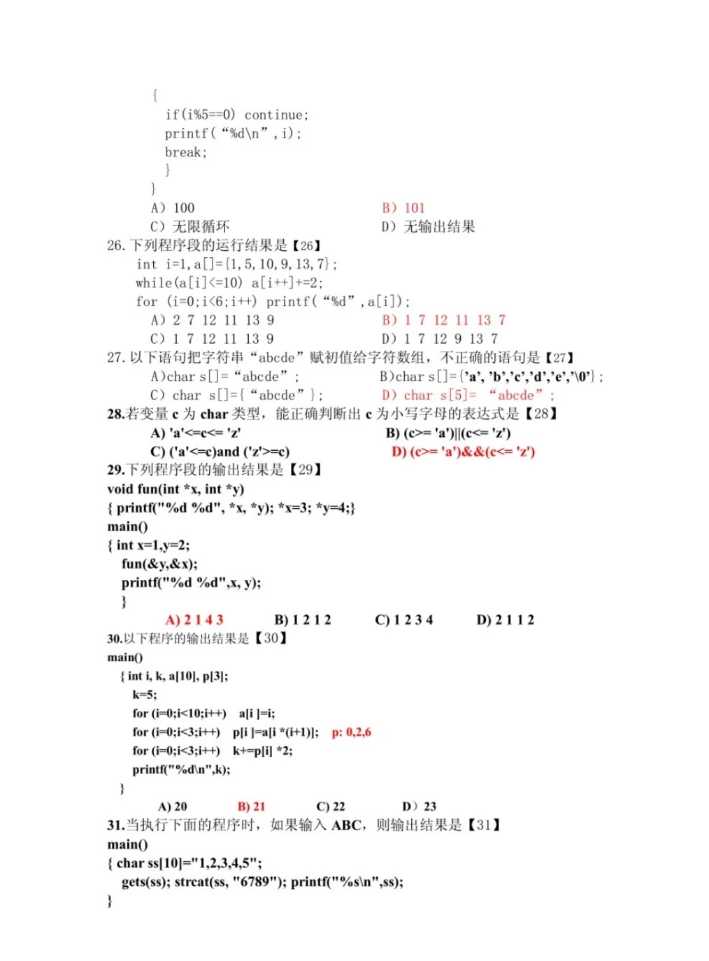 C语言程序设计期末复习试卷🔥