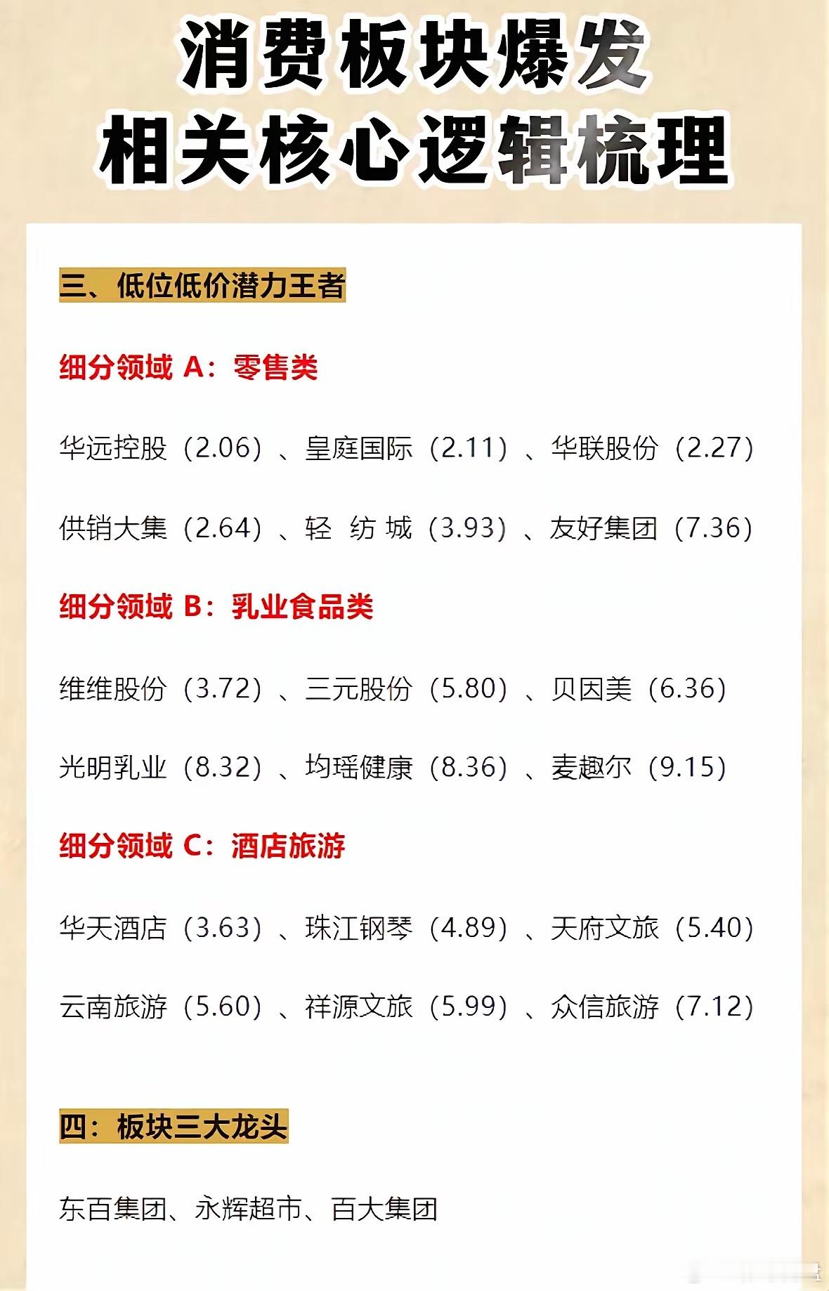 消费板块爆发,核心逻辑梳理,抓住潜力王者!消费板块爆发:政策催化叠加旺季需求,零售、免税、酒店等细分龙头领涨,永辉、中免等标的潜力突出。