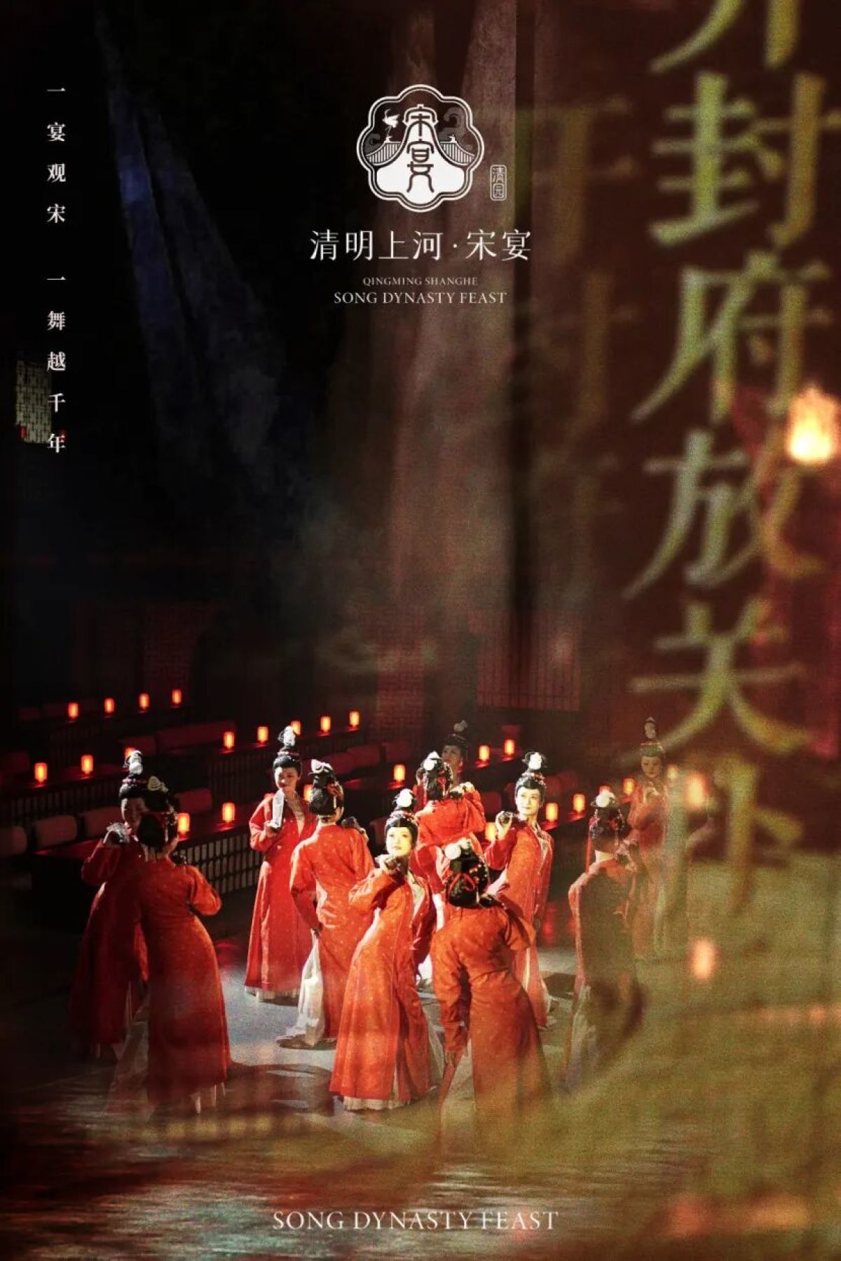 《清明上河·宋宴》沉浸式餐秀,以“活态宋式风雅”为主题的全景沉浸式宴演,通过“宴席+演艺+科技”的创新形式,让游客化身北宋汴京雅士,跟着宋代名人的脚步风雅入宴。八幕十场,演绎大宋生活美学,从序章《菊盏流光》的茶香菊影,到终章《东京梦华》的市井烟火,让游客充分感受“食不厌精脍不厌细”的宋式饮食哲学。