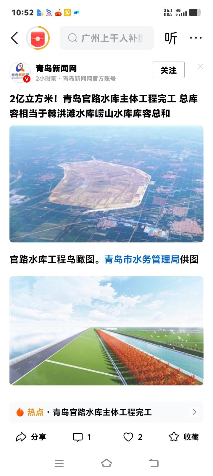 青岛惊天大手笔!砸91亿巨资在胶州李哥庄镇建2亿立方“超级水缸”,2026年蓄水改写山东半岛命运! 当北方城市为水资源焦虑时,青岛悄然落下了一枚震撼棋局的重子。近日,随着最后一方土石夯实,总投资超91亿元的官路水库主体工程宣告完工。这不是普通的水利项目,而是一座总库容达2.11亿立方米的“超级水缸”,其规模相当于棘洪滩与崂山水库的总和。 站在胶州市李哥庄镇的施工现场,绵延12.7公里的围坝如一条巨龙盘卧。这座最大坝高24米的工程,仅用一年多时间就实现围坝全线贯通,其背后是无数建设者与时间赛跑的汗水。在许多人尚未察觉时,一座关乎千万人未来的生命之源工程已拔地而起。 为何要举巨资建造如此庞大的水库?答案藏在青岛乃至山东半岛的发展脉络里。长期以来,青岛供水依赖“单渠单库”,犹如行走在水资源安全的钢丝上。官路水库的诞生,将彻底终结这一历史,构筑起双水源互补的坚固防线。 更深远的意义在于,它是国家水网的关键落子。作为南水北调东线工程的重要调蓄枢纽,官路水库将长江水、黄河水与本地水源巧妙串联,形成一张覆盖胶东半岛的“活水网络”。这不仅是青岛的工程,更是山东构建现代水网的骨干支撑。 数字背后是惊人的技术攻坚。库区地下水位高、断裂带防渗、大体积护砌……建设者们创新十余项工法专利,用“智慧建造”攻克一道道难题。工程荣获多项省级以上荣誉,诠释了何为新时代的“高质量基建”。 根据规划,这座水库将于2026年下半年开始充库蓄水。届时,滚滚清流将通过泵站和输水线路,注入城市命脉。青岛的供水保障能力将实现质的飞跃,并为区域高质量发展注入源源不断的“水动力”。 与水库配套的青岛北部中心水厂也已箭在弦上。这座位于李哥庄镇陈家埠村南、占地超430亩的现代化水厂,将分两期建设,最终实现日供水80万立方米的规模。它如同超级心脏,将官路水库的血液泵向市内各区。 从空中俯瞰,水库、水厂、管网正织就一张全新的供水蓝图。这不仅是物理空间的连接,更是城市安全与发展信心的连接。它保障的是千家万户的水龙头,守护的是万亿级产业集群的运转,托起的是半岛城市群的未来雄心。 当2026年清泉涌流之时,人们或许会忘记今天的细节,但一定会记住这份未雨绸缪的远见。官路水库,储存的不只是2亿方水,更是一个沿海大都市面对资源挑战的主动破局,一份关于可持续未来的郑重承诺。 青岛巨变 水资源战略